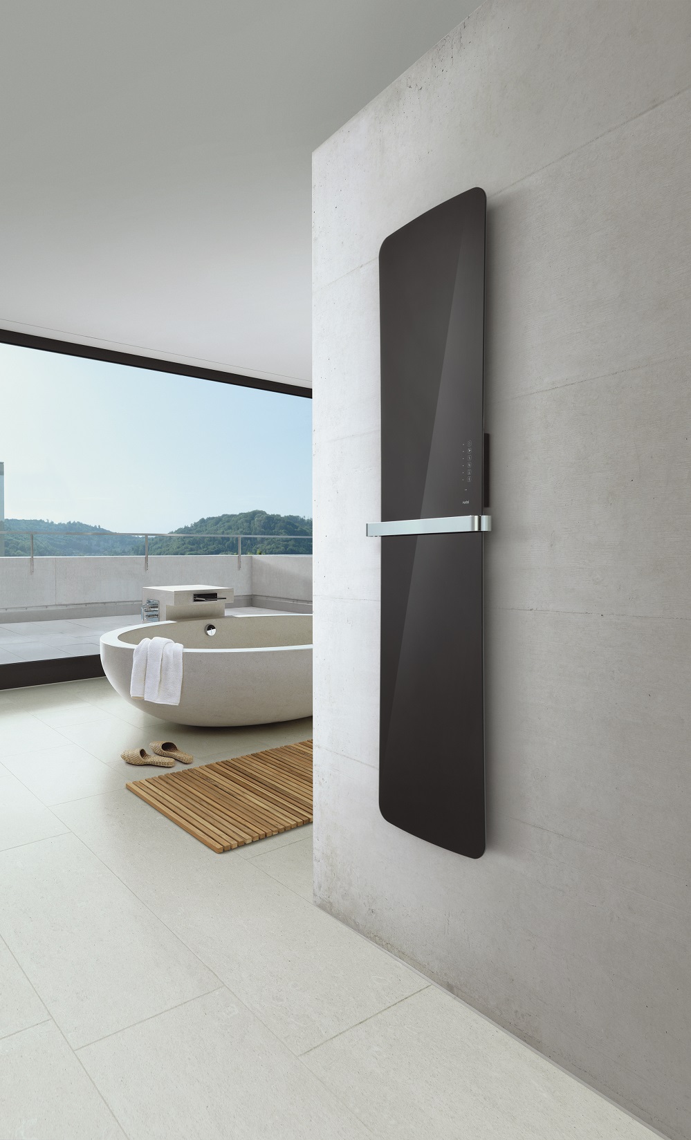 Presentato da Runtal (Campogalliano, MO), il radiatore di design Runtal Folio Glass, ideato dai designer Perry A. King e Santiago Miranda, è un connubio di tecnologia di riscaldamento e forma raffinata ed essenziale. Nero lucido intramontabile, bianco lucido purista o specchio multifunzione: Runtal Folio Glass si integra armoniosamente in qualsiasi interno grazie alla elegante superficie in cristallo e al corpo estremamente sottile di 10 millimetri, la superficie interamente chiusa e la silhouette leggermente sciancrata. Il radiatore, concepito per il funzionamento solo elettrico, offre la libertà di creare calore in bagno in modo flessibile e rapido. Le eleganti barre portasalviette (due in totale), consentono di posizionare gli asciugamani direttamente sulla superficie di vetro. In tutte le stagioni, indipendentemente dal riscaldamento centralizzato ad acqua calda, il radiatore di design Runtal Folio Glass può essere azionato con il comando touch intuitivo direttamente sul radiatore o mediante telecomando.