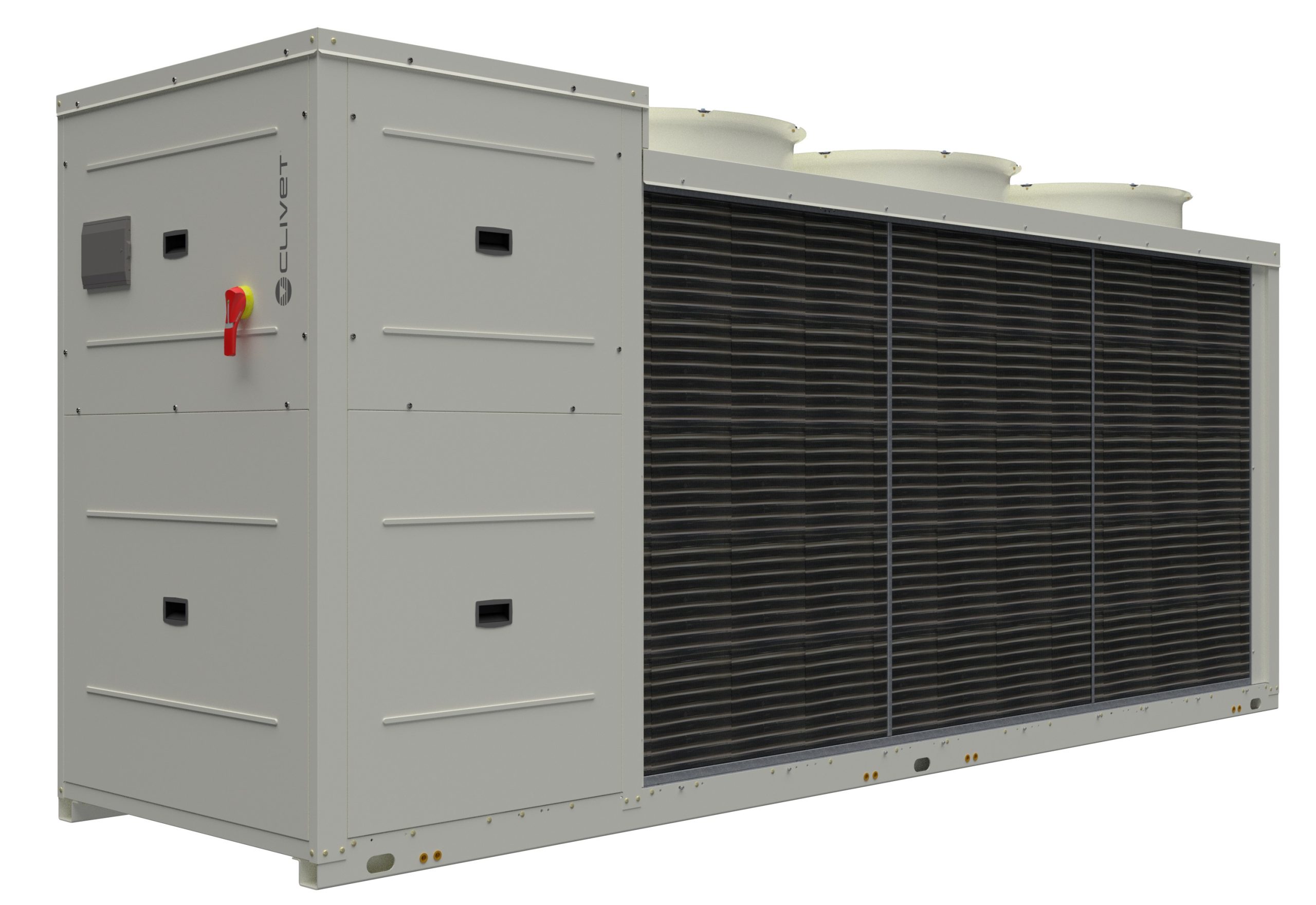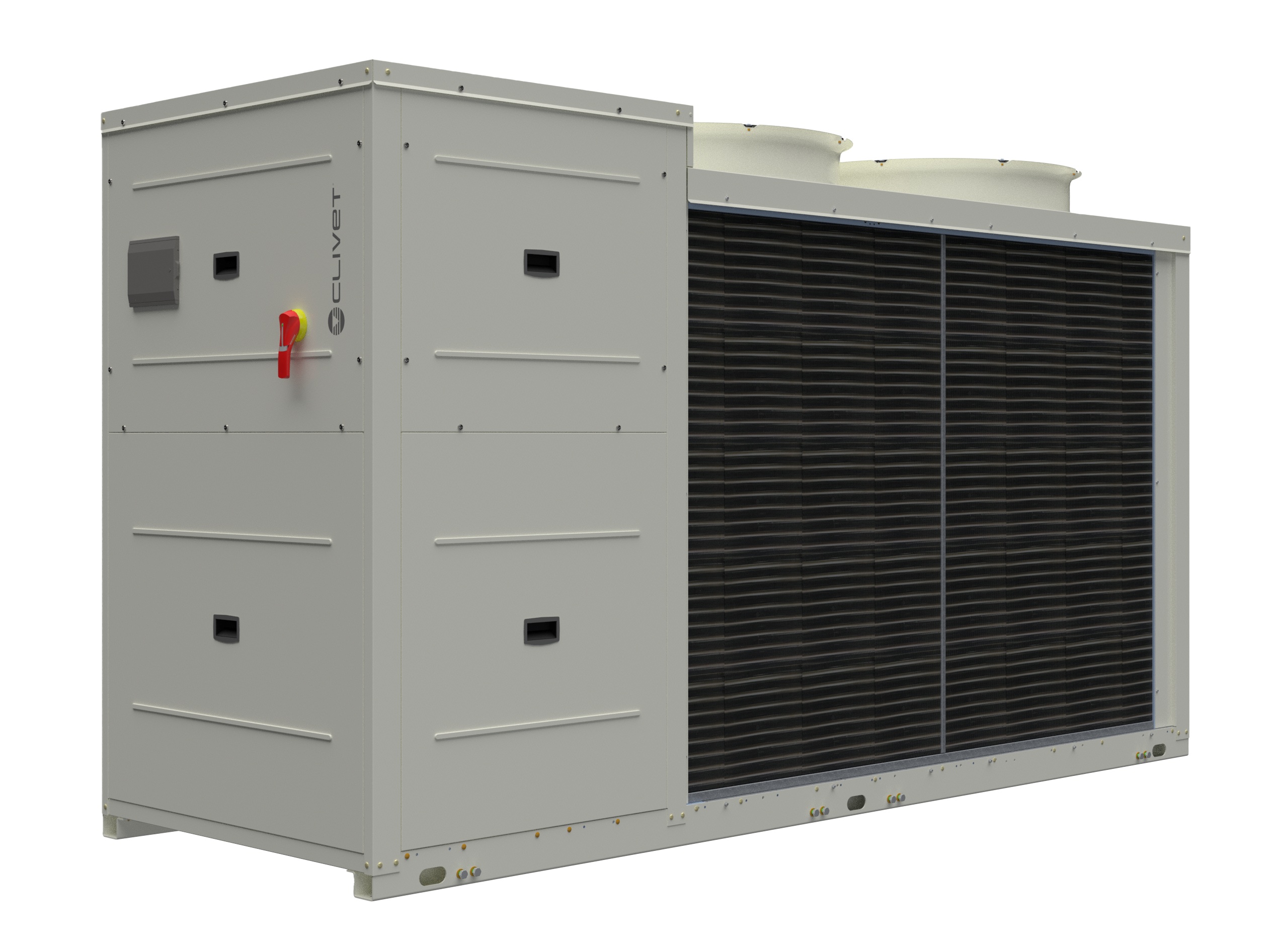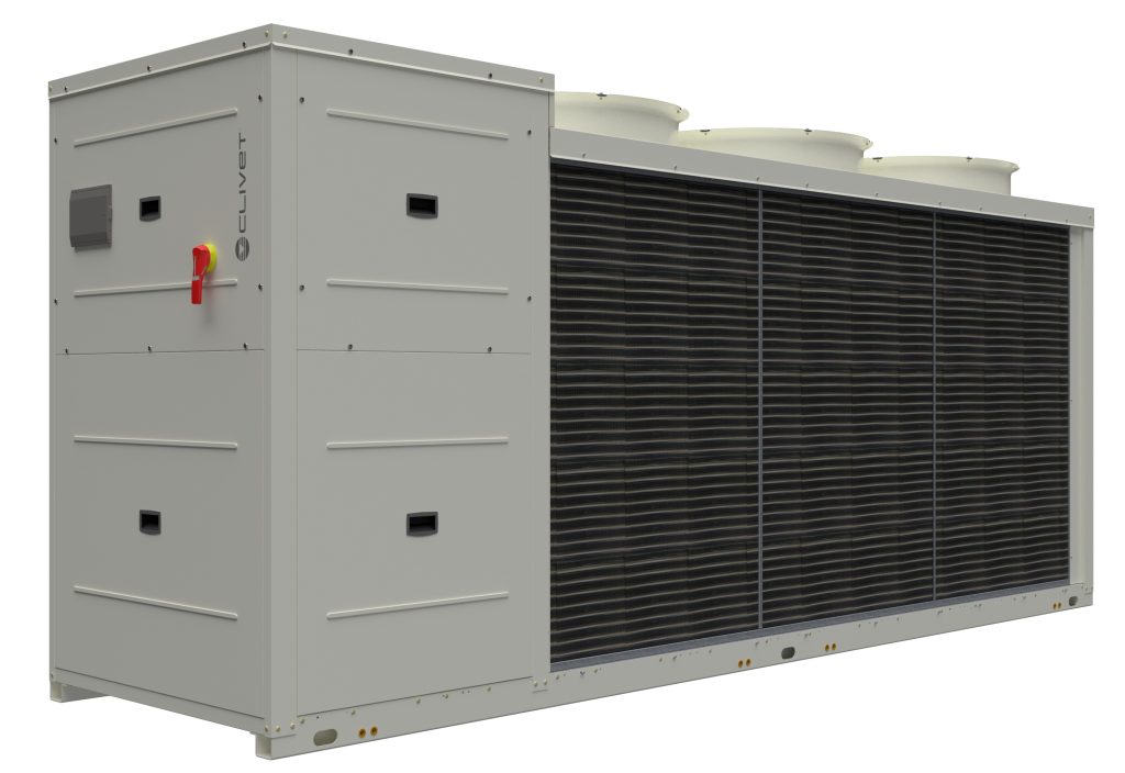 Clivet (Feltre, BL) lancia la serie Large EVO FC (WiSAT-YEE1-FC): il nuovo refrigeratore di liquido con FreeCooling, compressori con tecnologia scroll inverter e potenze da 104 a 232 kW.