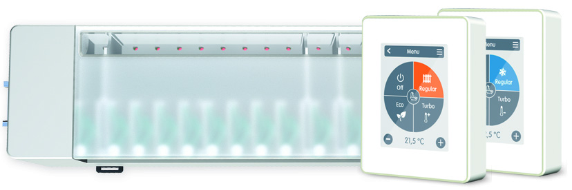 Caleonbox Clima e Caleon Clima consentono la commutazione estate-inverno dell’impianto, invertendo il ciclo della pompa di calore oppure attivando un’unità di raffrescamento indipendente.