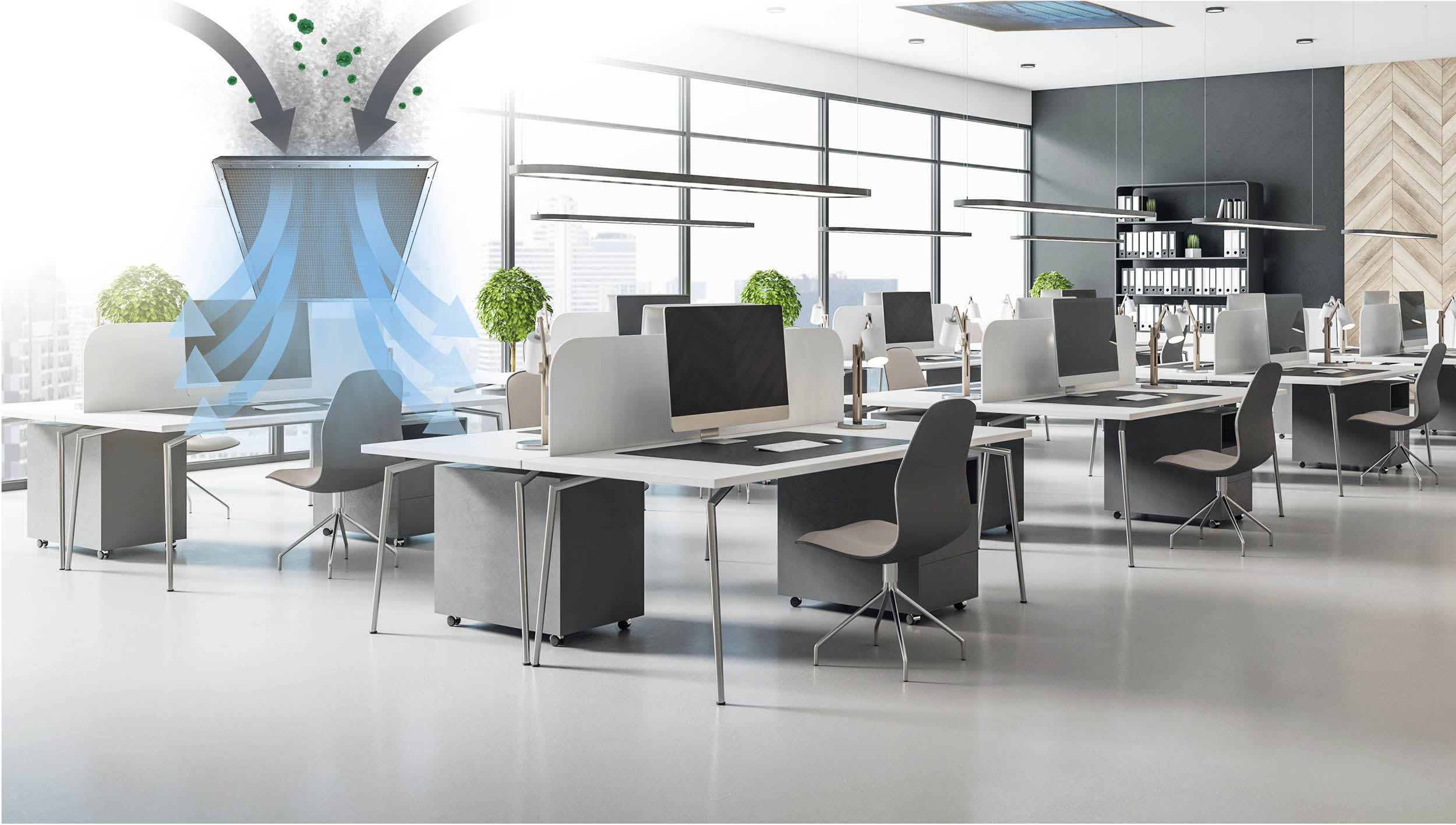 Presenta il sistema di filtrazione innovativo e brevettato NANOHUB KtV® e la sanificazione dell’aria in ambiente avviene in pochi minuti con attivazione automatica.