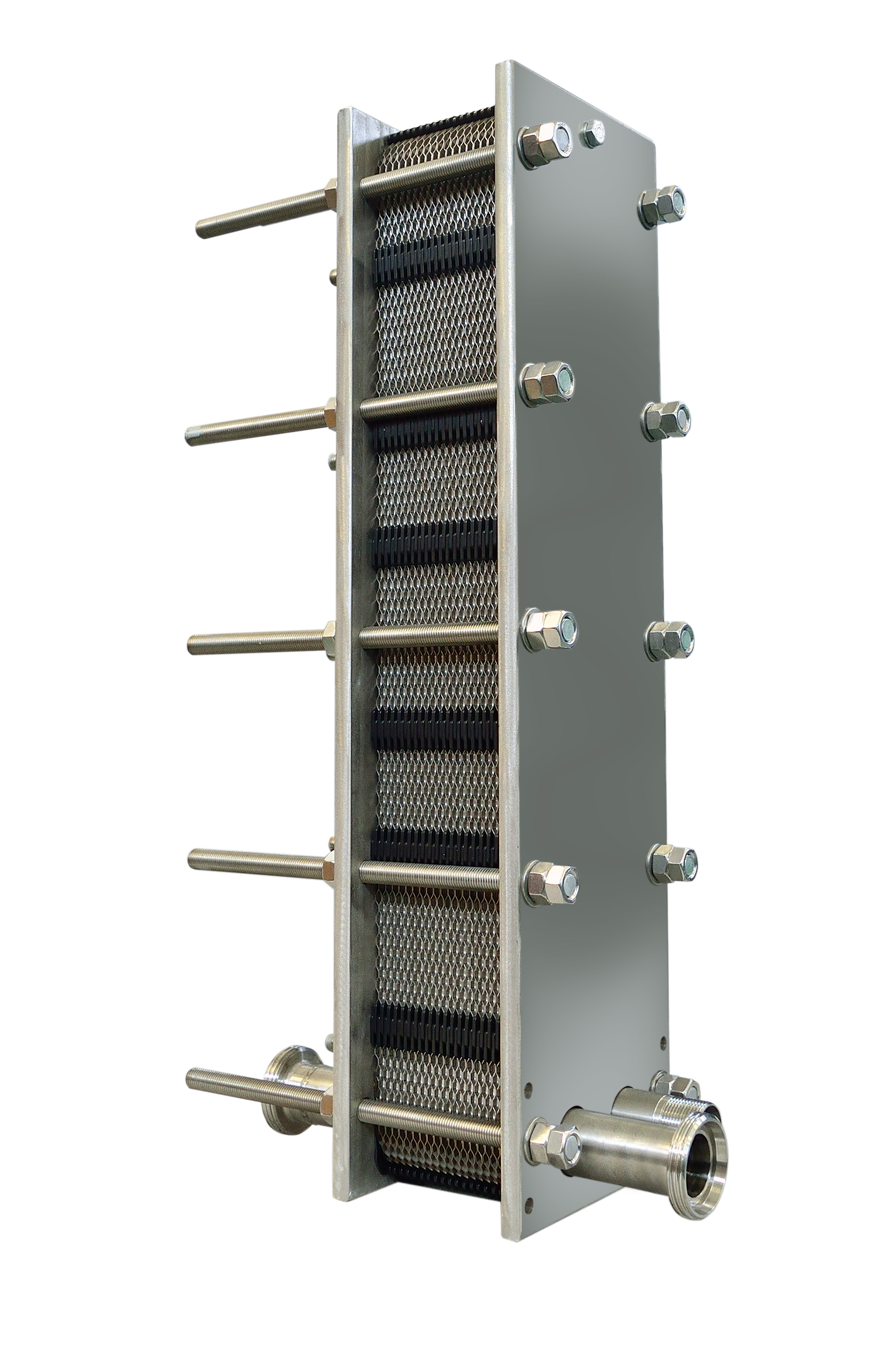 L’acciaio inossidabile è impiegato in maniera diffusa nell’industria alimentare. Questo, infatti, resiste alla corrosione causata da molti cibi e bevande. Fondamentale è il fatto che il prodotto non viene in alcun modo “contaminato” dall’acciaio Inox, evitando alterazioni di sapore, colorazione di cibi e bibite. Oltre a questo fattore determinante, l’acciaio Inox è un materiale che si pulisce con estrema facilità, assicurando l’igiene durante la lavorazione degli alimenti in generale. Inoltre sulle piastre in acciaio Inox vengono montate guarnizioni certificate A.C.S., in quanto, dato l’impiego, non deve alterare la qualità di questi prodotti, sia conferendo loro un carattere nocivo per la salute, sia modificando le loro proprietà organolettiche, fisiche, chimiche e microbiologiche. L’ampia gamma di scambiatori è costruita con il telaio e tutta la componentistica 100% in acciaio Inox e possono avere connessioni di differente tipologia: filettate, rullate, flangiate, clamp, Din 11851.