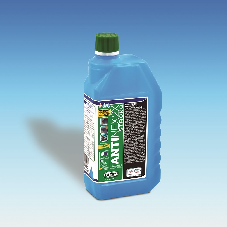 Facot Chemicals (Capralba, CR) presenta Antinex 2X Strong, sciogli fanghi a doppia concentrazione risanante, disgregante per morchie, fanghi e calcare per impianti termici.