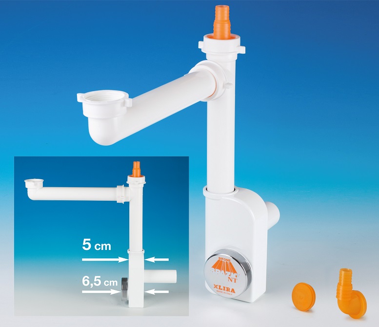 Ancora più compatto nelle sue dimensioni (65 mm di spessore) unite ad una forma più dinamica, il Sifone Spazio 1NT EVOLUTION di LIRA (Valduggia, VC) conferma la collaudata esperienza e affidabilità della famiglia dei sifoni Spazio NT.