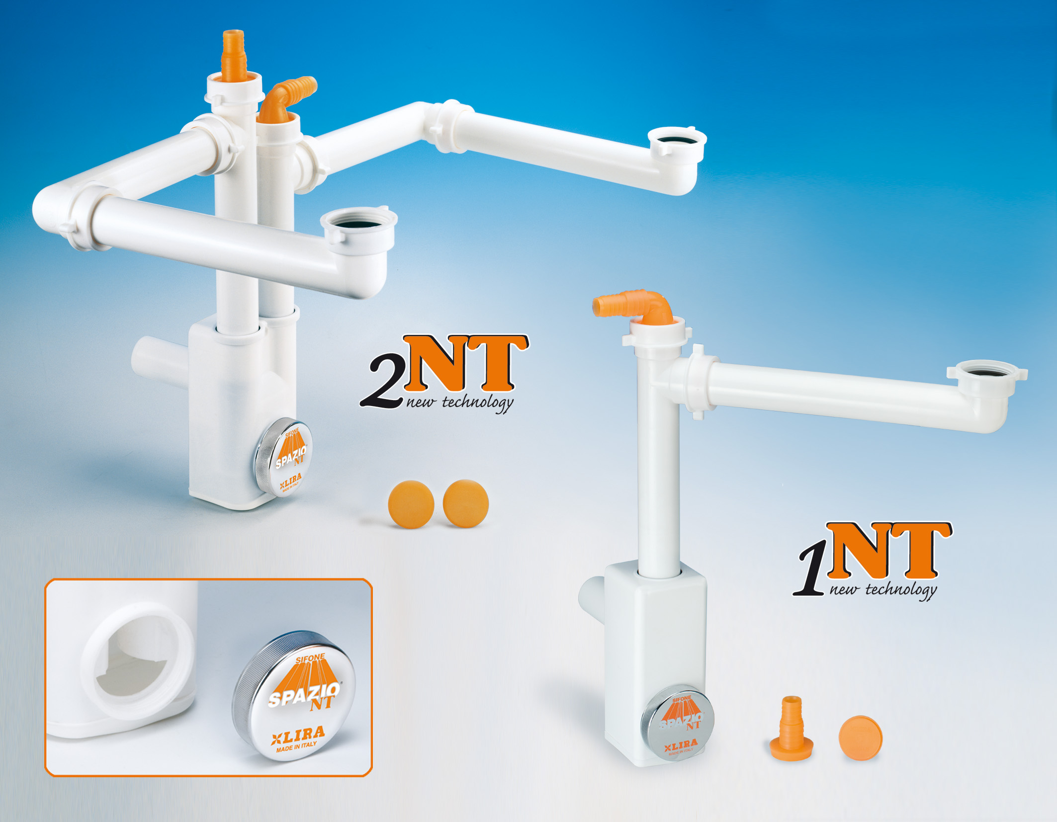 I sifoni Spazio 1NT (per lavelli a 1 vasca ) e Spazio 2NT ( per lavelli a 2 vasche) nascono dall’avanzata esperienza di Lira (Valduggia, VC).