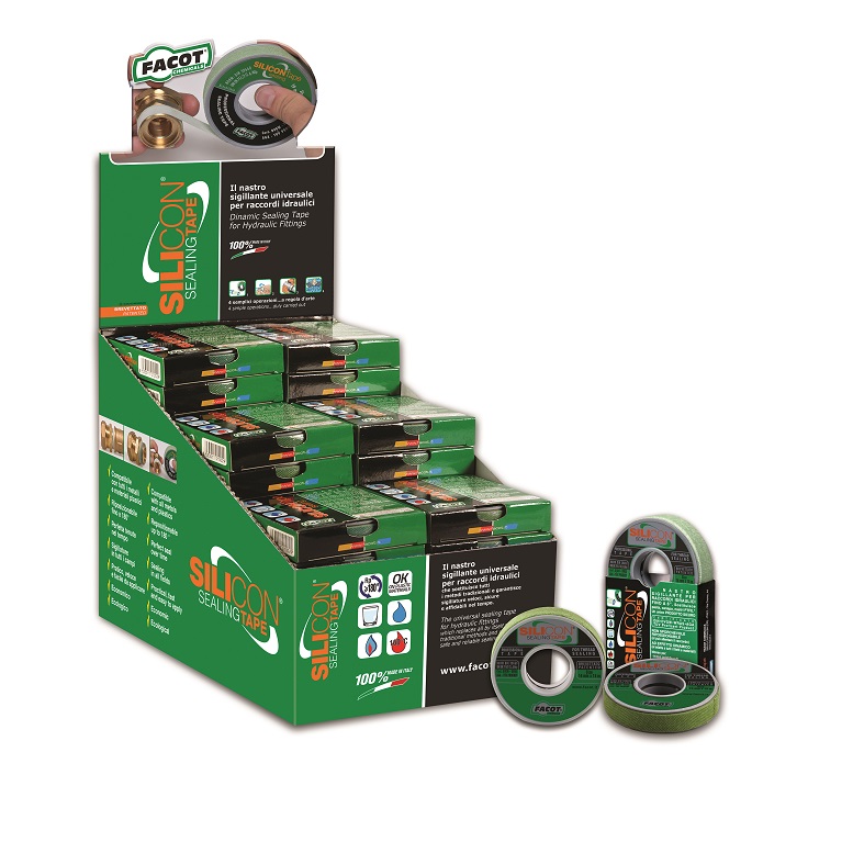 A oltre dieci anni dal lancio di Silicon Tape, il sigillante universale per fluidi termoidraulici prodotto da Facot Chemicals (Capralba, CR) in esclusiva e presente in 60 paesi nel mondo, l’azienda lombarda propone la moderna ed innovativa confezione nel pratico ed ergonomico dispenser che consente di velocizzare le operazioni di sigillatura senza sprecare un solo centimetro di prodotto. Il dispenser può essere inoltre riutilizzato più volte sostituendo i rocchetti come ricambi. Il dispenser ha inoltre la funzione di pretensionare il nastro nel modo corretto affinché esso penetri agevolmente fra le spire dei filetti. Applicabile su tutti i materiali costituenti i raccordi e tubazioni degli impianti civili ed industriali.