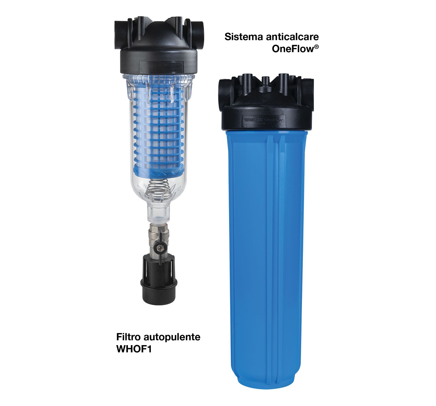 Per migliorare ulteriormente la qualità dell’acqua, Watts propone il kit OneFlow® + WHOF1, il nuovo filtro per acqua autopulente con sistema di lavaggio in controcorrente per l’efficace rimozione di sedimenti. Il filtro, abbinato ad uno dei modelli OneFlow®, fornisce una soluzione completa per rimuovere i sedimenti e il calcare dalle tubazioni e dalle apparecchiature e proteggere così il sistema idrico negli edifici