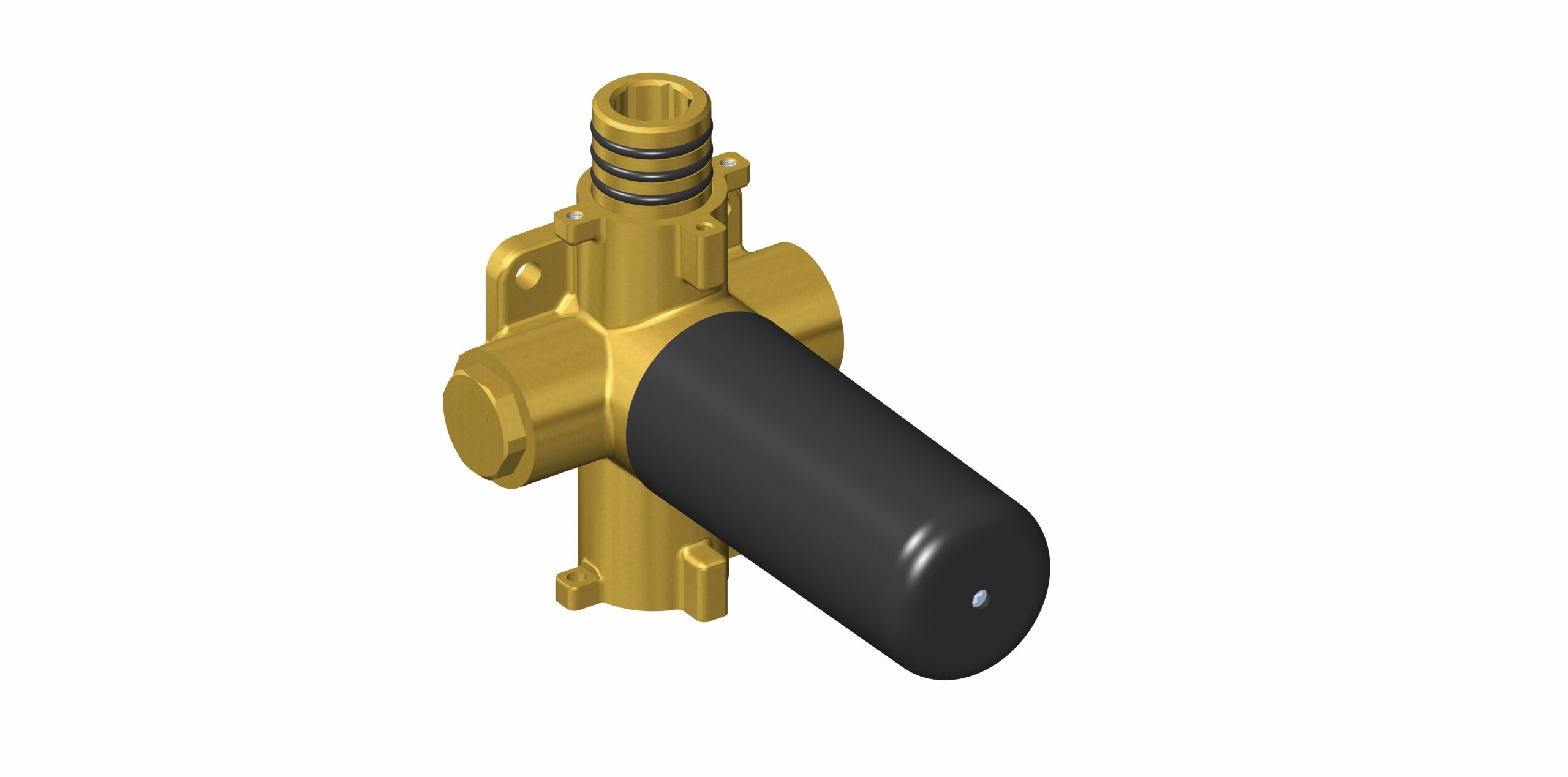 La serie è composta da un miscelatore termostatico, due deviatori e rubinetti d’arresto che possono essere combinati in un monoblocco unico e compatto.