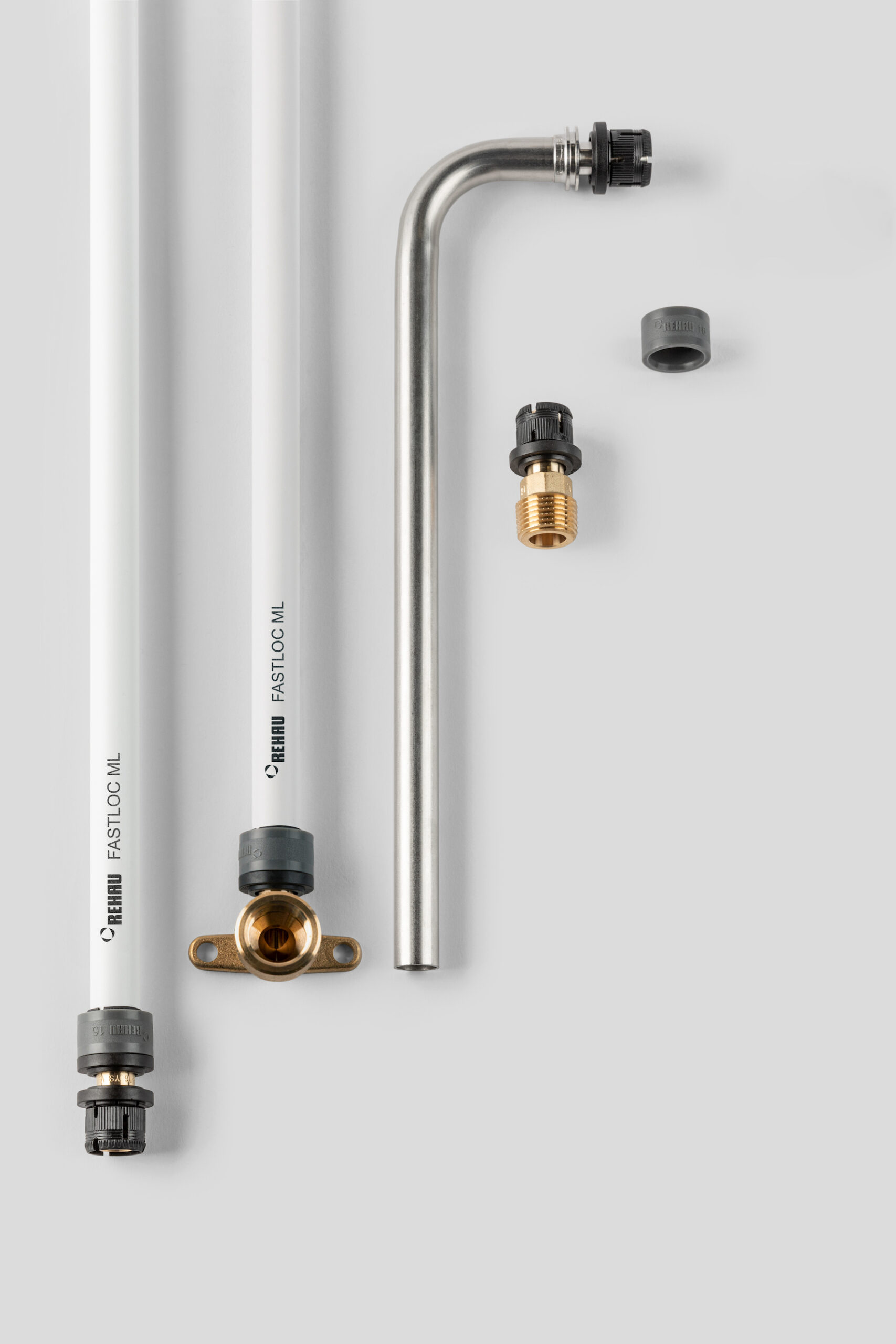 Conforme alle norme UNI EN ISO 21003-2:2011 e UNI EN ISO 21003-5:2009, il nuovo sistema FASTLOC di REHAU è composto da tubi multistrato metallo-polimero (PE-RT/Al/PE-RT) – disponibili anche in versione pre-isolata – dall’eccellente comportamento alla flessione e dall’elevata resistenza alla deformazione, il cui strato in alluminio previene la diffusione dell’ossigeno. Il programma è declinato nei diametri 16, 20, 25, 32 e 40 mm, ed include manicotti inscindibili in PVDF, materiale flessibile dall’ottimale scorrevolezza durante la posa e buona resistenza chimica, all’invecchiamento e alle tensioni, e diverse tipologie di raccordi premontati in fabbrica, con corpo in ottone, bussola interna ed elemento di bloccaggio in POM GF rinforzato in fibra ad alta rigidità e stabilità dimensionale.