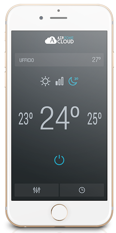 Installando sui sistemi il Webserver Airzone sarà possibile estendere il controllo dell’utente da qualsiasi dispositivo connesso ad internet come smartphone, tablet o PC semplicemente installando la applicazione gratuita Airzone Cloud.
