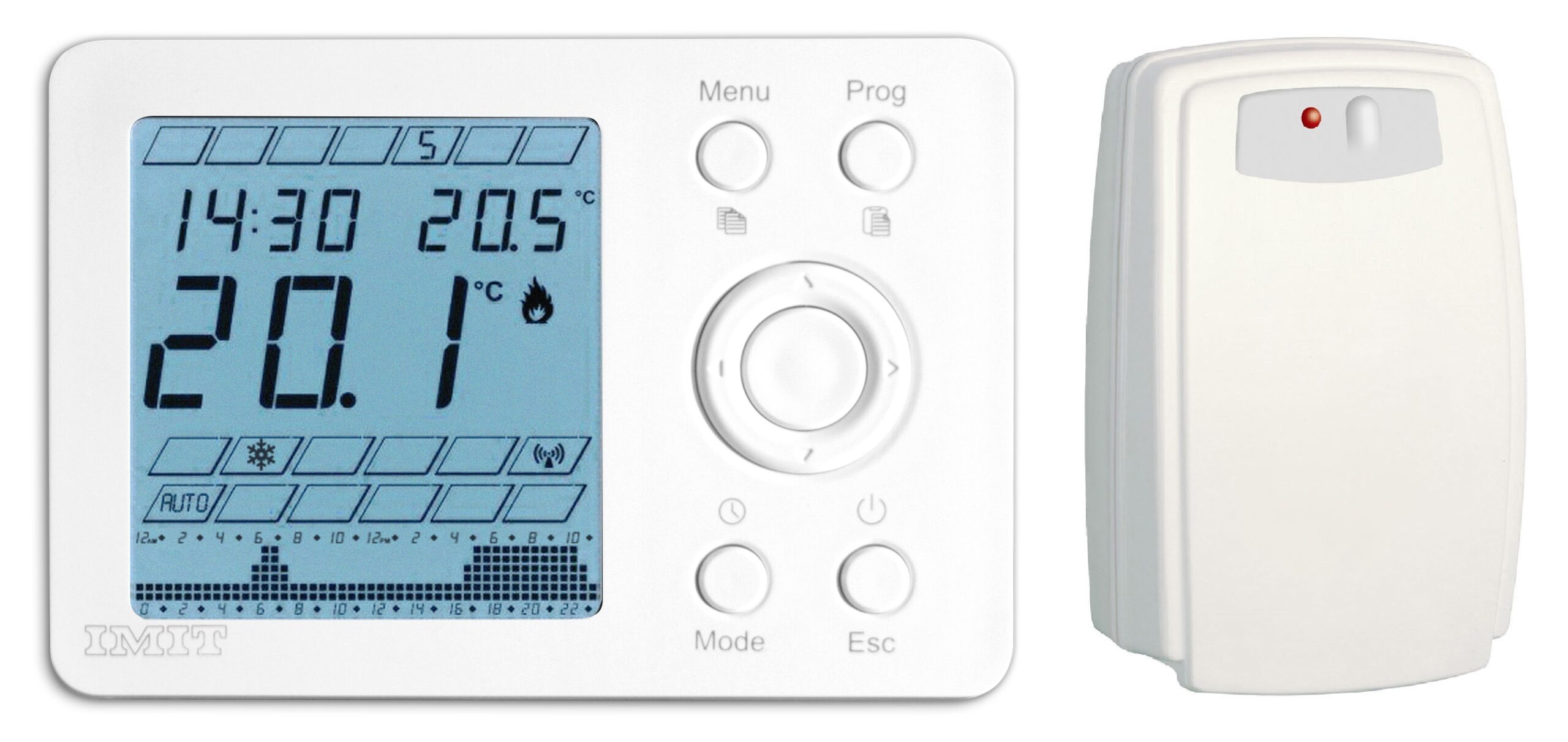 I termostati ed i cronotermostati presentati da IMIT Control System (Castelletto Ticino, NO) con ricevitore radio RF 868 Mhz sono pensati per tutte le situazioni dove non si vogliano o non si possano collegare i cavi del consenso caldaia direttamente al termostato.