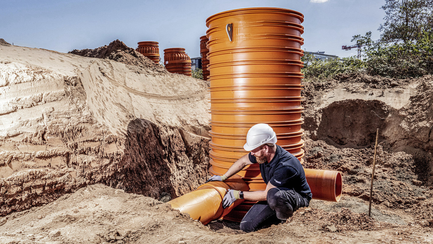 – i pozzetti per fognatura AWASCHACHT PP, disponibili nelle dimensioni nominali DN 1000, 800 e 600, con una scelta di oltre 120 diversi fondi pozzetti e una soluzione speciale, il pozzetto smart AWASCHACHT, e un tempo di assemblaggio ridotto fino al 25% rispetto ai materiali tradizionali;