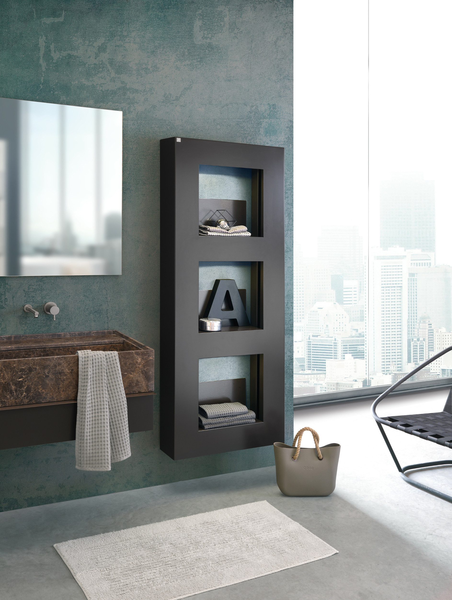 Con Cube la ricerca Deltacalor cerca di superare il confine tra elemento riscaldante e complemento d’arredo, trasformando il radiatore in una scaffalatura di design dove possono trovare posto non solo asciugamani e tessili vari, ma qualsiasi tipo di oggetto o soprammobile. Cube è un radiatore idraulico della linea iDeas costituito da una cornice in acciaio ricavata da un unico foglio che cela gli elementi riscaldanti; a seconda del modello, completano la cornice due o tre mensole dotate di un punto luce che conferisce a ogni ripiano un’illuminazione soffusa di grande effetto. Le linee essenziali e pulite di Cube lo rendo perfetto per ogni ambiente, dal bagno alla camera da letto, grazie anche alla vasta gamma di finiture nelle quali il radiatore è disponibile.