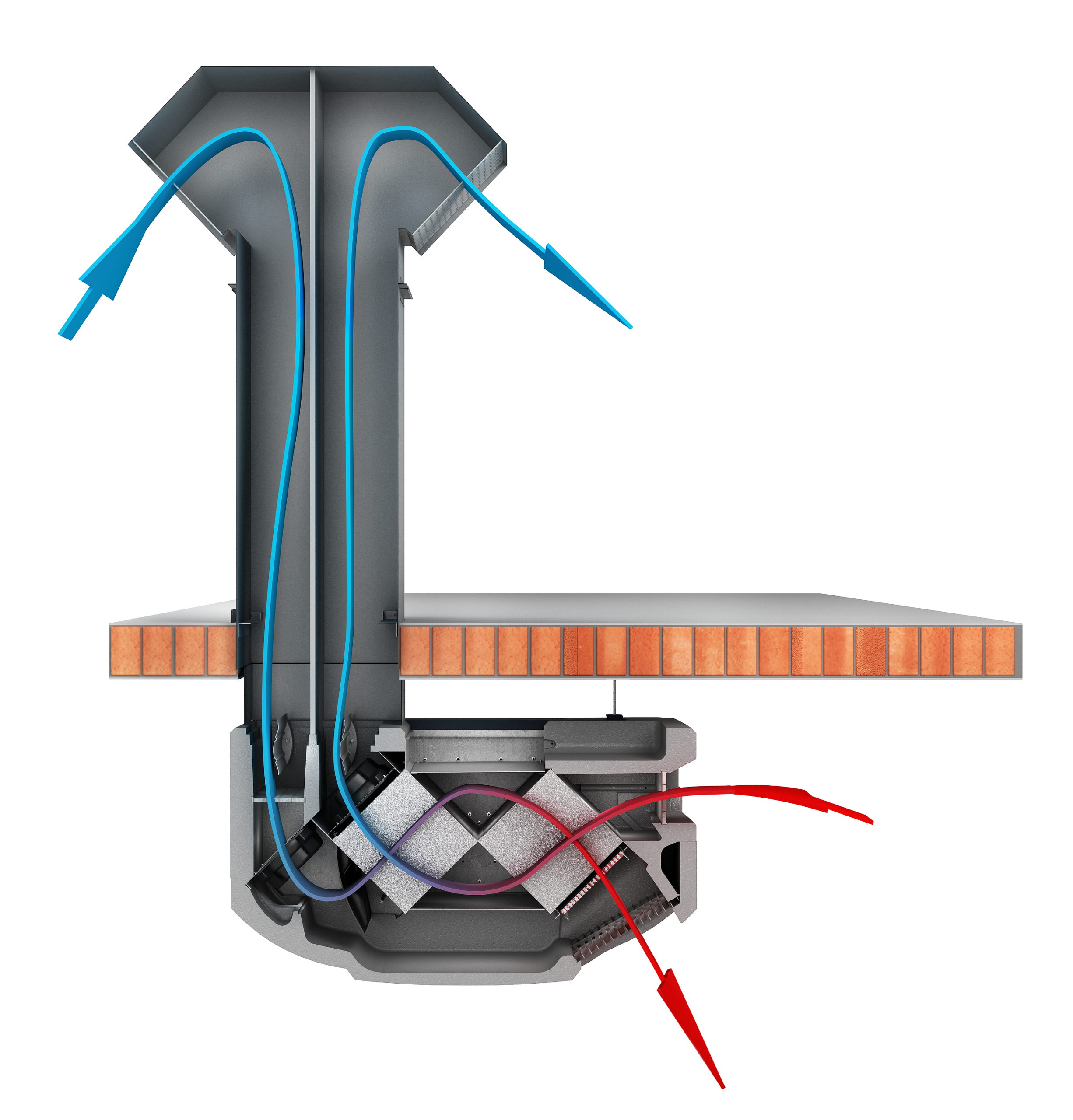 L’elevato tasso di recupero energetico (conforme a ERP2018) di OXeN è dovuto alla presenza di un doppio recuperatore dii calore a flussi incrociati. E’ prevista una batteria di postriscaldamento ad acqua o elettrica.