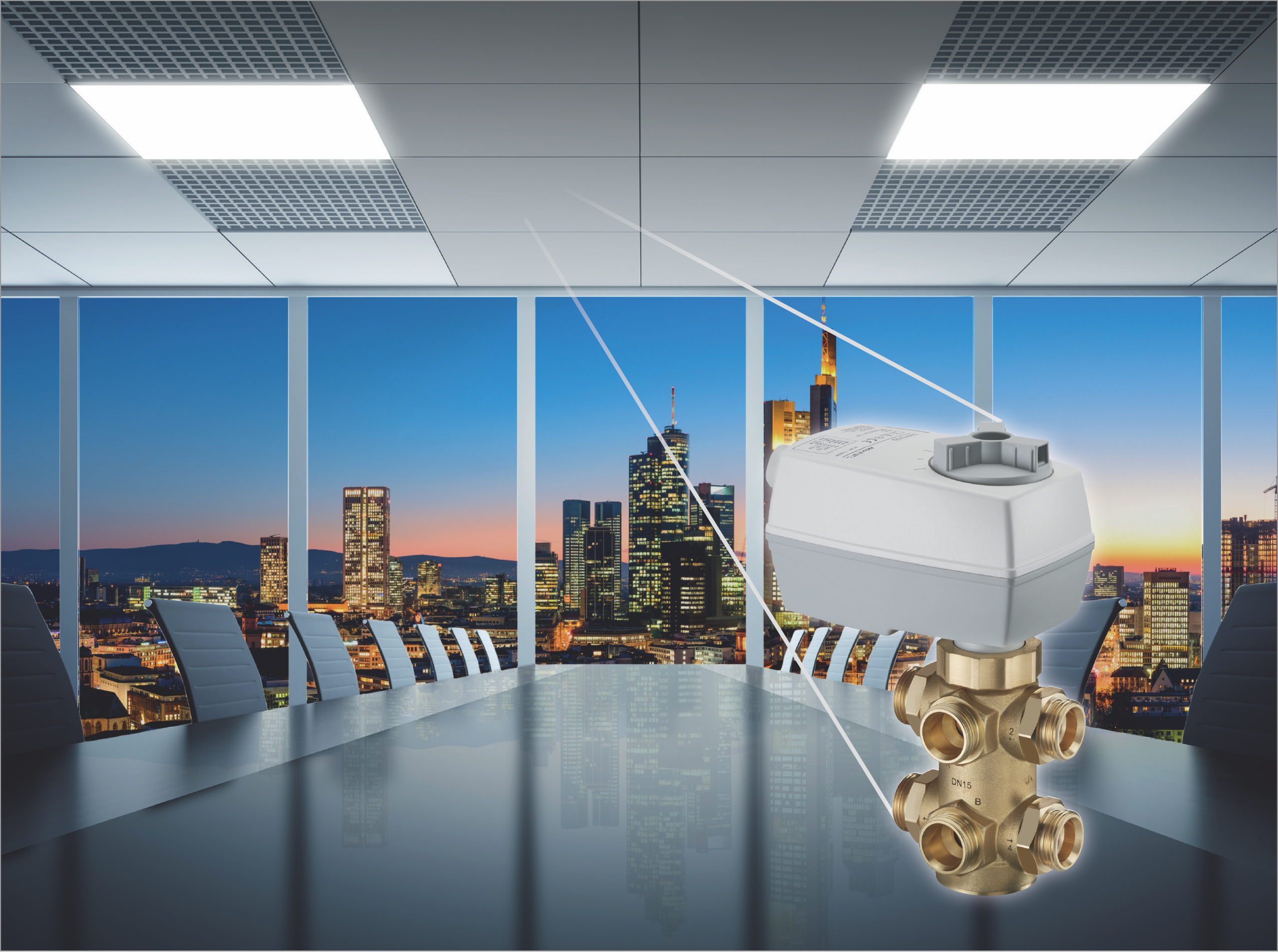 La valvola a sfera a 6 vie Optibal W6 di Oventrop (Calderara di Reno, BO), progettata per l’utilizzo in sistemi di riscaldamento/raffrescamento a quattro tubi con moduli riscaldanti/raffrescanti a soffitto o fan coil, è composta da due valvole a sfera a tre vie azionate da un inserto rotativo.