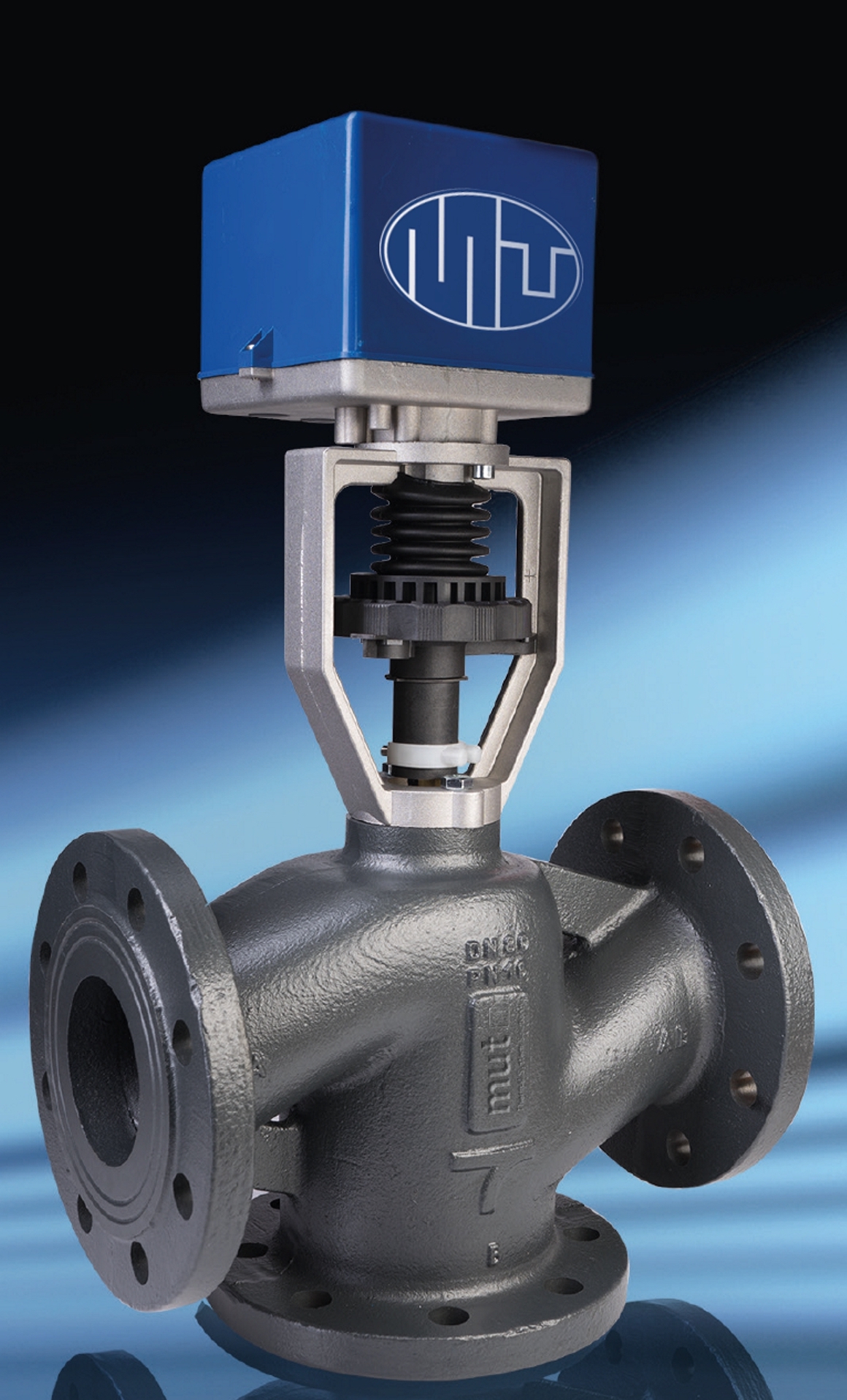 Le valvole a globo MK DN con servomotori AS con autoapprendimento, proposte da Mut Meccanica Tovo (Montecchio Maggiore, VI), sono utilizzate per controllare il flusso di acqua calda e fredda. Possono essere collegate come valvole intercettatrici (2 vie) o deviatrici/miscelatrici (3 vie) in impianti idraulici, impianti di riscaldamento/climatizzazione. Disponibili nelle taglie DN50, DN65, DN80, DN100, DN125 a DN150, sono motorizzate con motori MUT serie AS, controllabili con ben 5 tipologie di segnale e dotati di sistema di autoapprendimento, con forza motore fino a 3200 N. Queste valvole a 3 vie a otturatore (disponibili anche a 2 vie) garantiscono un bassissimo trafilamento (KVo <0,1% Kvs) anche se utilizzate in impianti con alta pressione differenziale. La curva di regolazione standard è di tipo equipercentuale. L’otturatore in ottone è stato progettato per evitare il grippaggio anche in presenza di calcio, scorie e depositi.