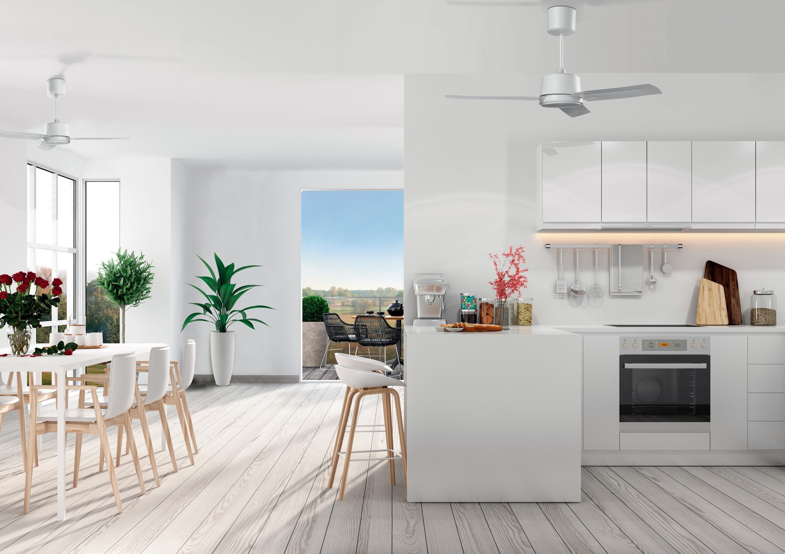 I ventilatori a soffitto Nordik Eco sono dotati della funzione “Reversibilità” e hanno la predisposizione per accogliere l’apposito kit luce opzionale.