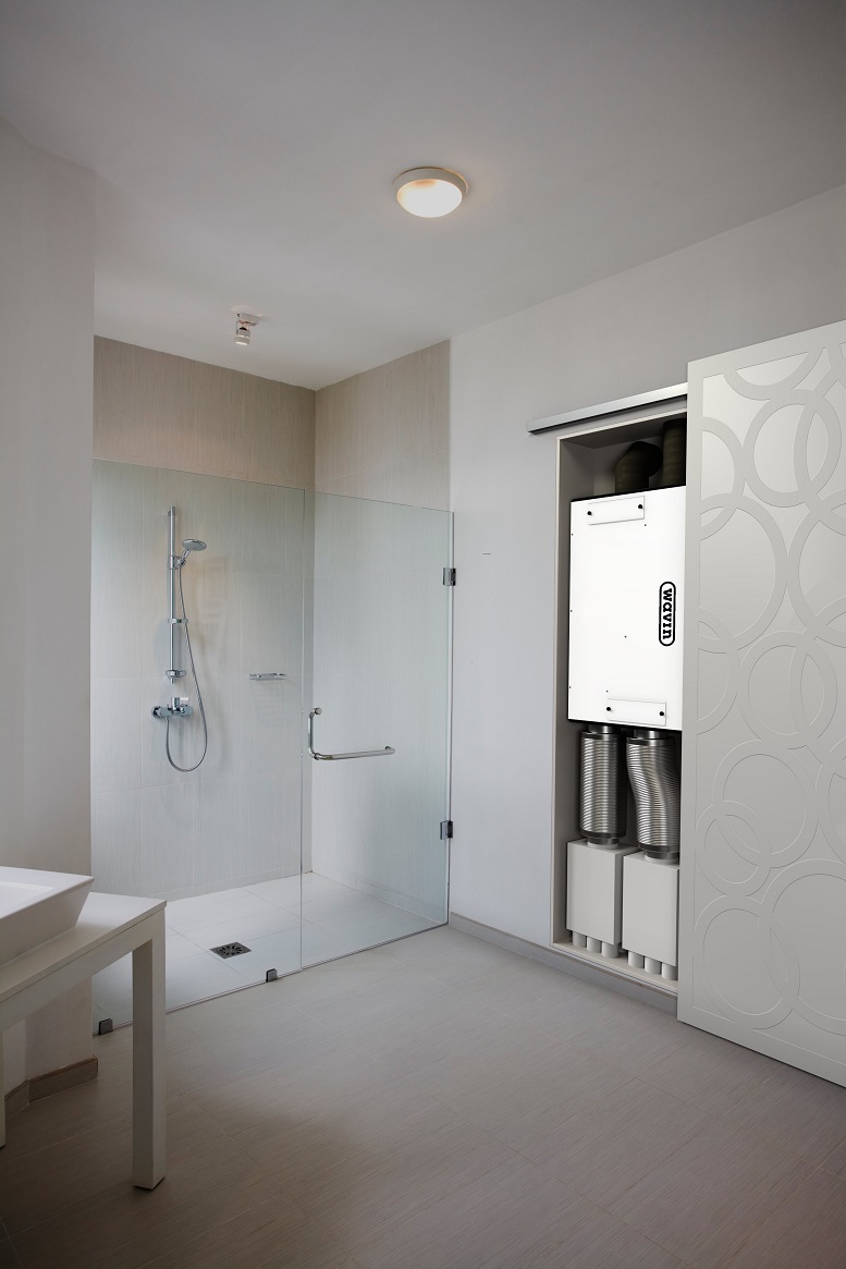 Il suo software include inoltre la gestione automatica della velocità in funzione dell’umidità relativa rilevata nell’ambiente, mentre l’elettronica è interfacciabile con Sentio, la soluzione smart di Wavin che permette di gestire il sistema da remoto tramite app.
