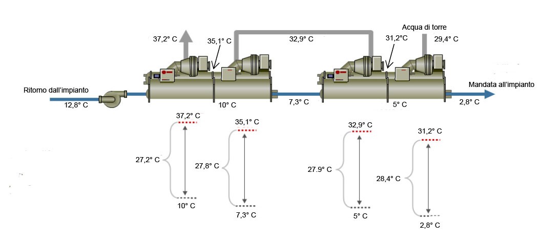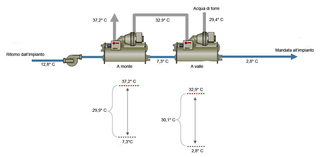 - Chiller in serie – macchina a valle 30,1 °C.