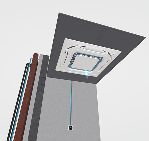La soluzione ottimale consiste nell’utilizzo di sistemi VRF con unità interne dotate di sensore di perdite di refrigerante integrato (figura 4). Il rilevamento di una perdita provvede a isolare automaticamente il circuito refrigerante collegato e attiva un allarme locale. Il monitoraggio ambientale e il controllo dell’unità possono essere collegati a un’adeguata selezione di ingressi e uscite, sia locali che basati su cloud.
