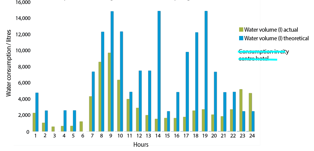 La seconda indagine ha riguardato un hotel per famiglie dotato di un ristorante aperto anche agli esterni, di un centro benessere e di un complesso di piscine. L’hotel ha meno di 20 anni e non ha mai subito lavori di ristrutturazione importanti. Il test è stato condotto durante le vacanze scolastiche quando l’hotel presenta un alto livello di occupazione. Ciò, insieme alla gestione del complesso ricreativo, avrebbe dovuto comportare un elevato consumo d’acqua.
