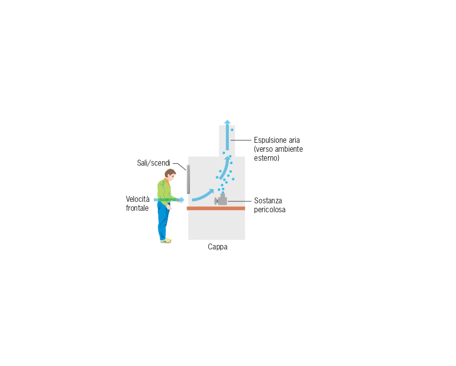 - Ventilazione al fine di provvedere adeguati livelli di diluizione degli inquinanti interni al laboratorio.