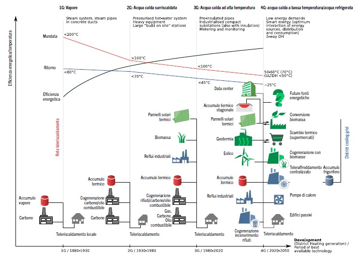 La figura 2 mostra la trasformazione dei sistemi di district energy avvenuta nel corso degli anni.