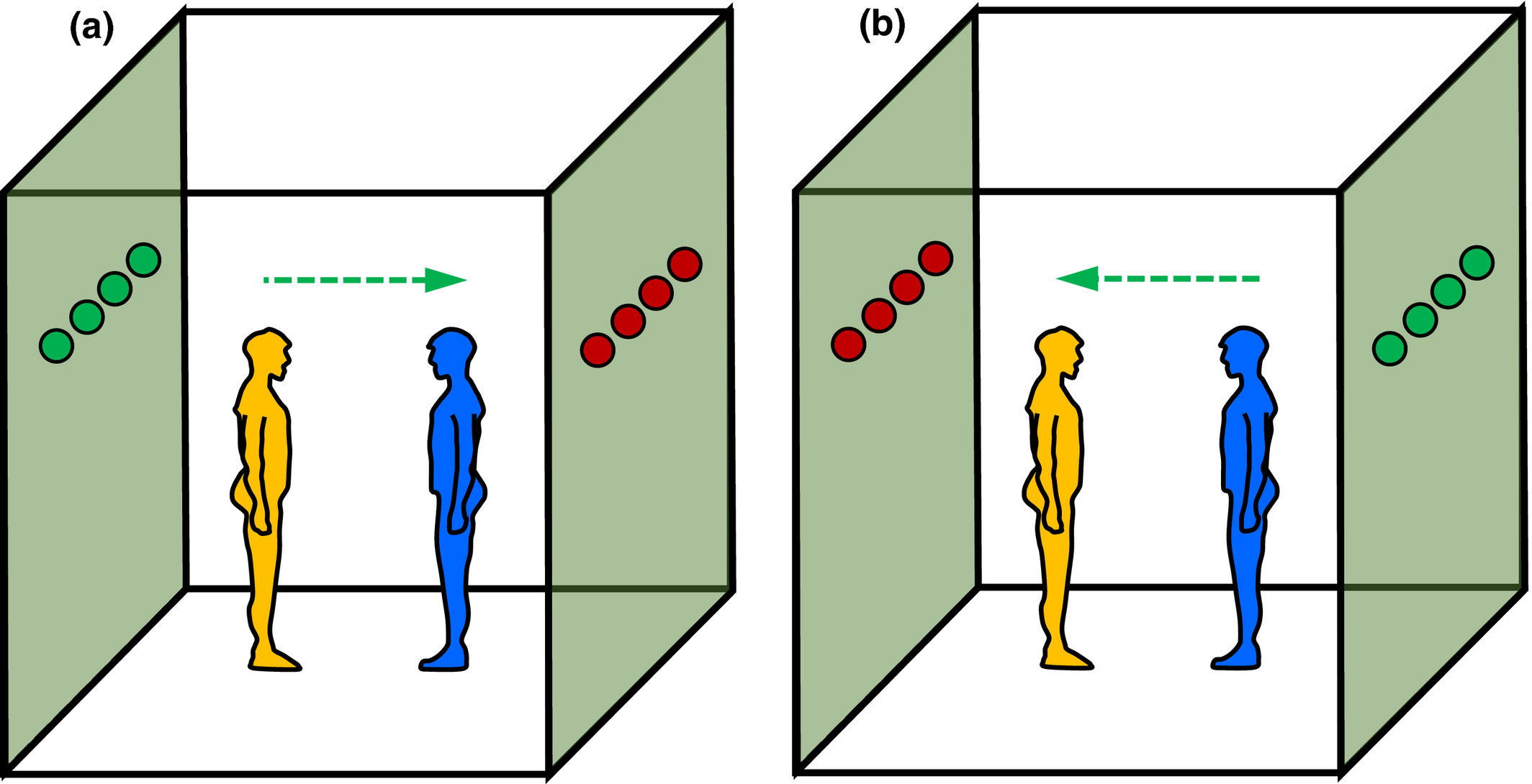 Fig. 4 – Studio della trasmissione di virus da soggetto infetti a soggetto esposto in funzione dei flussi d’aria (Fonte: Melikov)