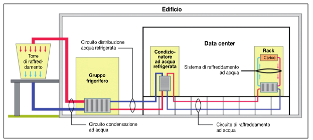 - sistemi con condizionatori di precisione installati direttamente in ambiente, di tipo autonomo a espansione diretta oppure ad acqua refrigerata;