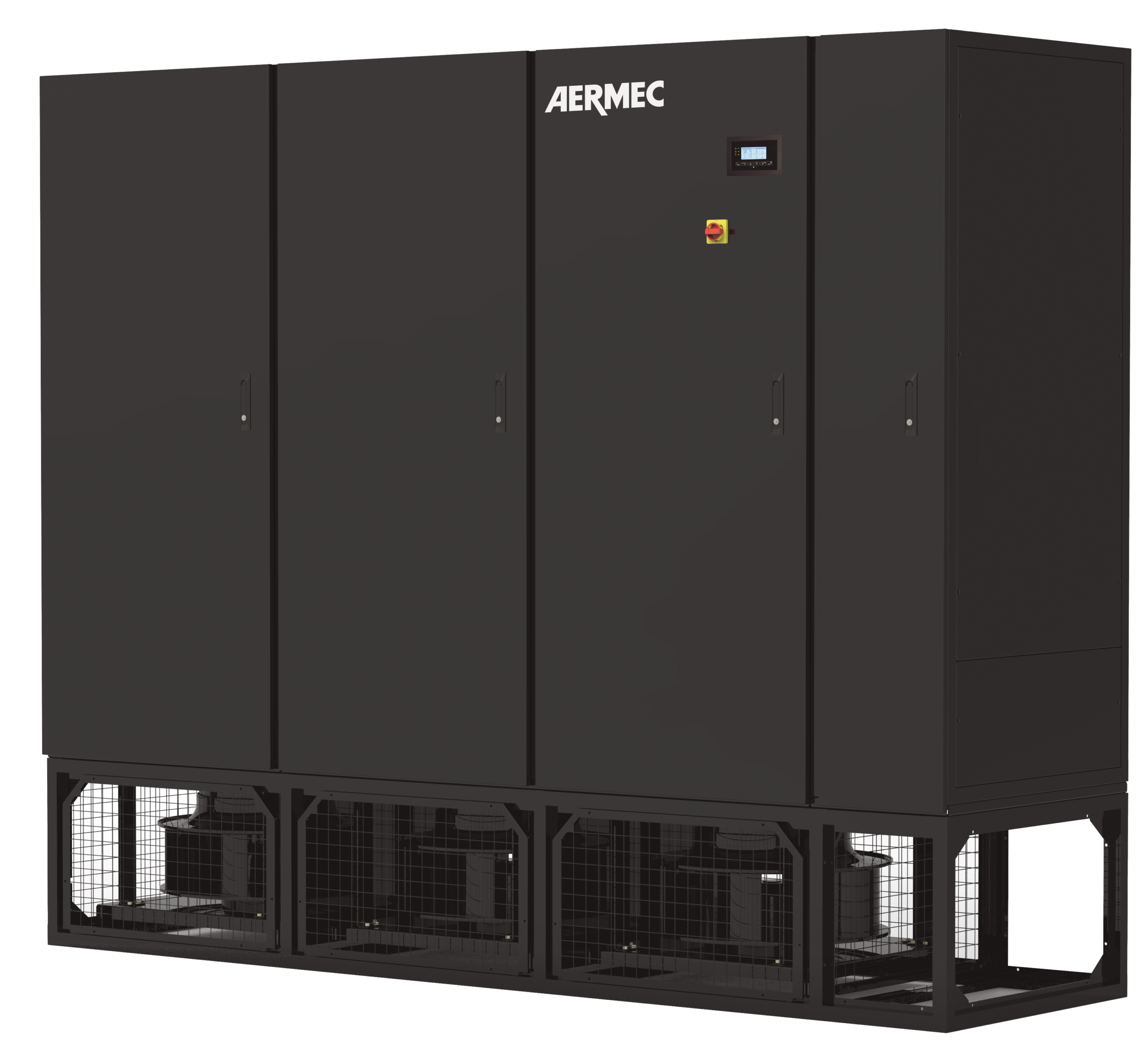 Per i Data Center aziendali di grandi dimensioni si utilizzano solitamente unità ad acqua refrigerata, anch’esse installate all’interno degli ambienti. Esse sono simili a quelle ad espansione diretta, con l’unica differenza che esse sono dotate di una batteria ad acqua refrigerata prodotta da un gruppo frigorifero dedicato.