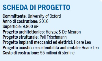 La sede della Blavatnik School of Government dell’Università di Oxford è un edificio di grande impatto visivo, situato in una zona importante dello storico Radcliffe Observatory Quarter. La scuola è stata istituita nel 2010 per sviluppare e insegnare le migliori pratiche di politica pubblica e di governo. Progettato dallo studio di architettura Herzog & De Meuron e costato 55 milioni di sterline, l’edificio di 9.800 m2 è caratterizzato da una facciata vetrata continua a tutta altezza (figura 9), come metafora della trasparenza nella vita pubblica, e da un grande spazio centrale, denominato Forum, destinato all’incontro e dotato di ampie scale per promuovere la comunicazione.