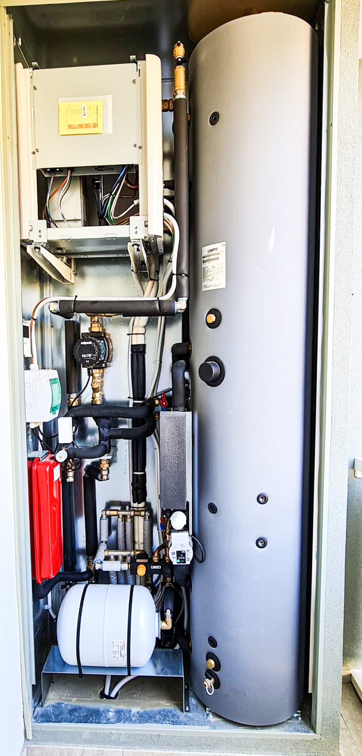 - circolatore, manometro, vaso d’espansione (7 l), valvole (differenziale, a 3 vie motorizzata, ecc.), sul circuito dei pannelli radianti;