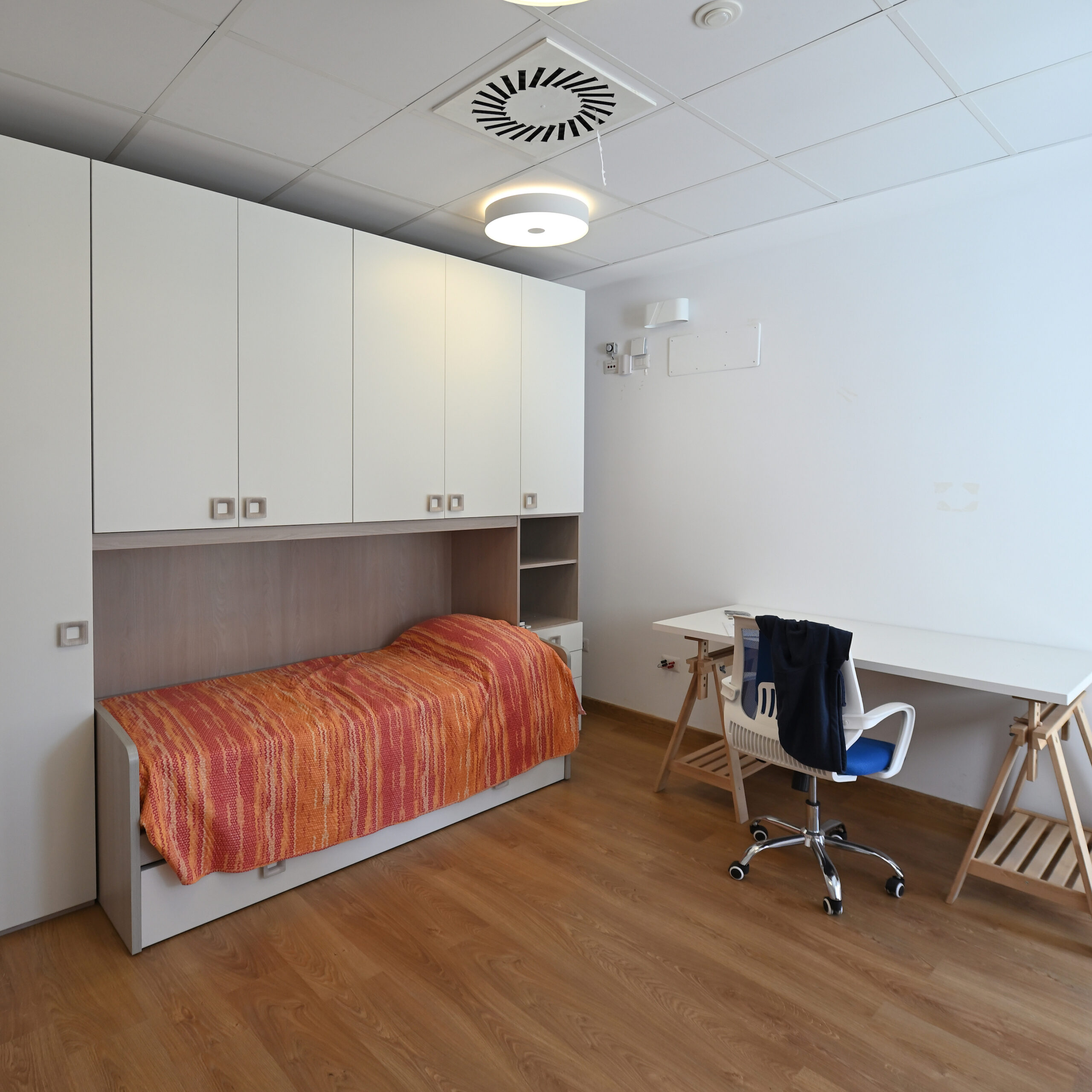 Il Dimostratore è un nZEB isolato (superficie ~71 m2; volume climatizzato ~188 m3) situato nel giardino della residenza universitaria beneventana. Gli ambienti comprendono soggiorno, cucina, due camere, bagno, locale tecnico, deposito per biciclette e un porticato, disposti su un unico livello, e accolgono due studenti dell’Università degli Studi del Sannio.