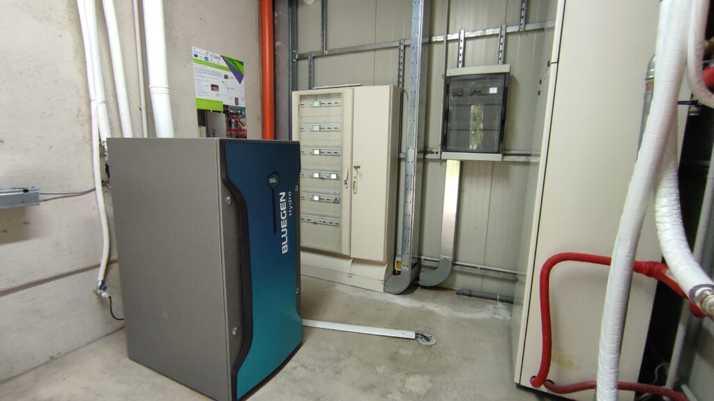 La cella a combustibile installata presso il Dimostratore è un micro-cogeneratore modulare del tipo SOFC (Solid Oxide Fuel Cell), modello BLUEGEN Hydro, prodotto da SolydEra per l’impiego in edifici residenziali e commerciali, che nel Dimostratore svolge una funzione di integrazione e back-up rispetto ai sistemi energetici preesistenti.