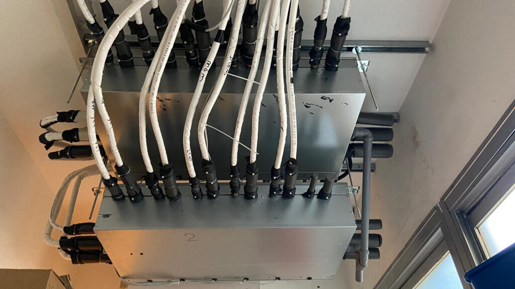 I collegamenti tra le selettrici e le unità interne sono stati eseguiti in un’unica tratta, con un numero limitato di giunzioni, riducendo il rischio di perdite di gas refrigerante in fase di esecuzione come in esercizio. Fortunatamente non abbiamo incontrato imprevisti, rispettando il cronoprogramma concordato con il committente».