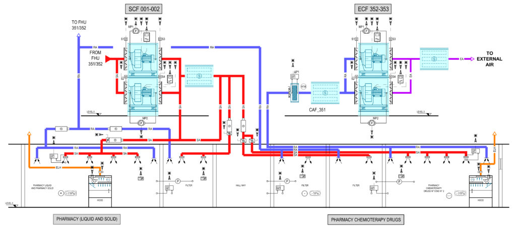 Nella CUP e nel nuovo ospedale oncologico, il monitoraggio e controllo degli impianti elettrici e meccanici sarà affidato a un BMS integrato, che ne garantirà il corretto funzionamento, la gestione ottimizzata e l’efficace manutenzione anche ai fini del contenimento delle risorse energetiche e umane impiegate.