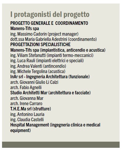 «Per questa commessa “chiavi in mano”, caratterizzata da un’estrema complessità progettuale sotto numerosi punti di vista (medico-sanitario, tecnologico, climatico, ecc.), Manens-Tifs è stata incaricata di selezionare e coordinare l’intero team professionale, composto da società di ingegneria e studi di architettura italiani ai vertici delle rispettive specializzazioni.