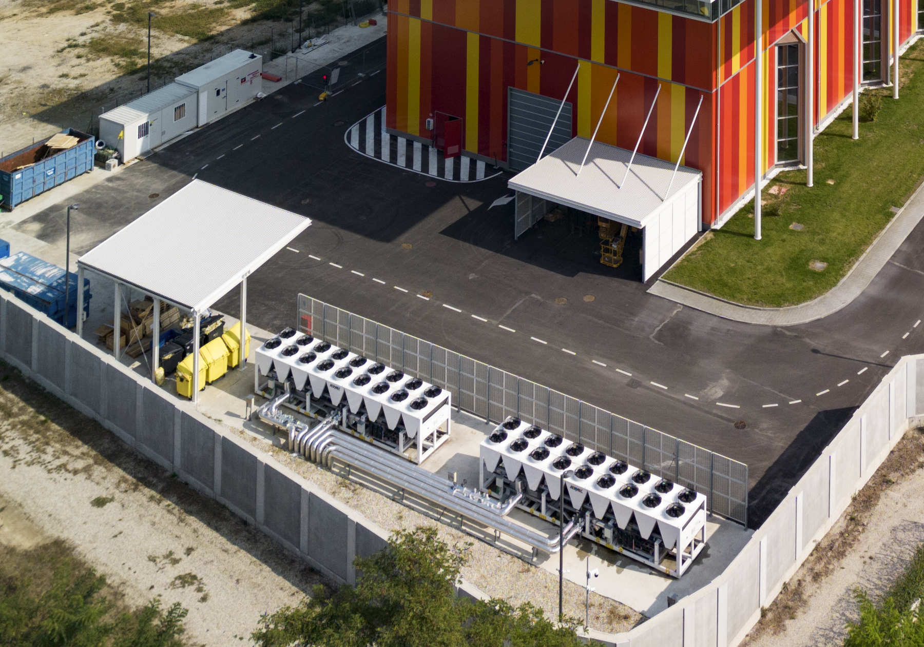 La produzione dei fluidi termovettori è affidata a due unità polivalenti installate nell’area tecnologica esterna all’edificio, ciascuna in grado di coprire il 70% del carico complessivo