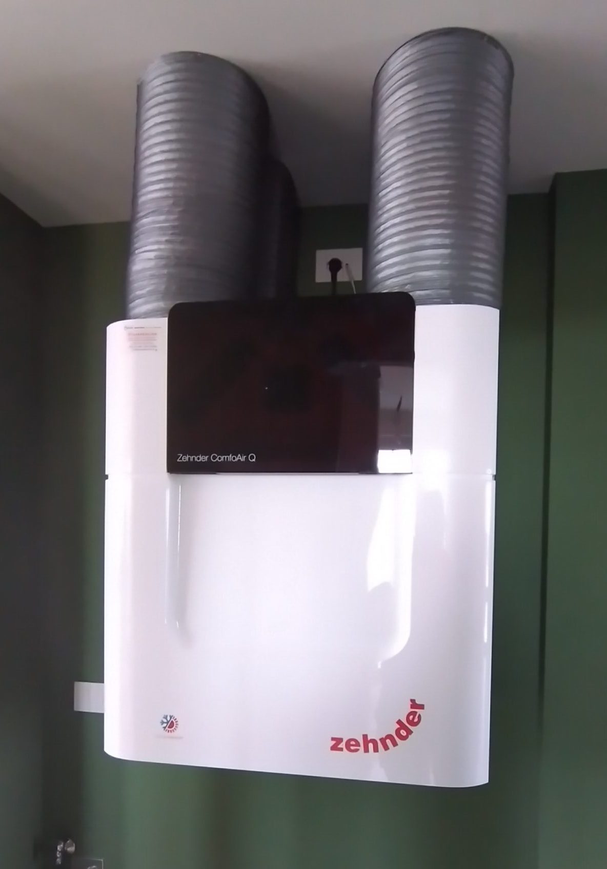 Disporre di un impianto di ventilazione climatica a bassa inerzia termica permette di rispondere rapidamente a questo fenomeno, mantenendo temperatura e umidità dell’aria entro l’intervallo di comfort in ogni condizione operativa. Si tratta di una rete aeraulica con mandate nei locali principali e riprese da cucina e servizi igienici, attestata su un’unità VMC in classe A+ composta in sintesi da: