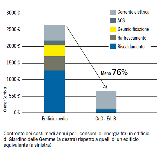 Completato da pochi mesi e quasi completamente abitato, Giardino delle Gemme è un insediamento a zero consumo di suolo, all’avanguardia non solo per il contenimento dei consumi e il ricorso alle fonti rinnovabili per la climatizzazione, ma anche per il comfort abitativo e la salubrità degli ambienti, grazie a un articolato sistema a pompe di calore aria/acqua con ventilazione climatica.