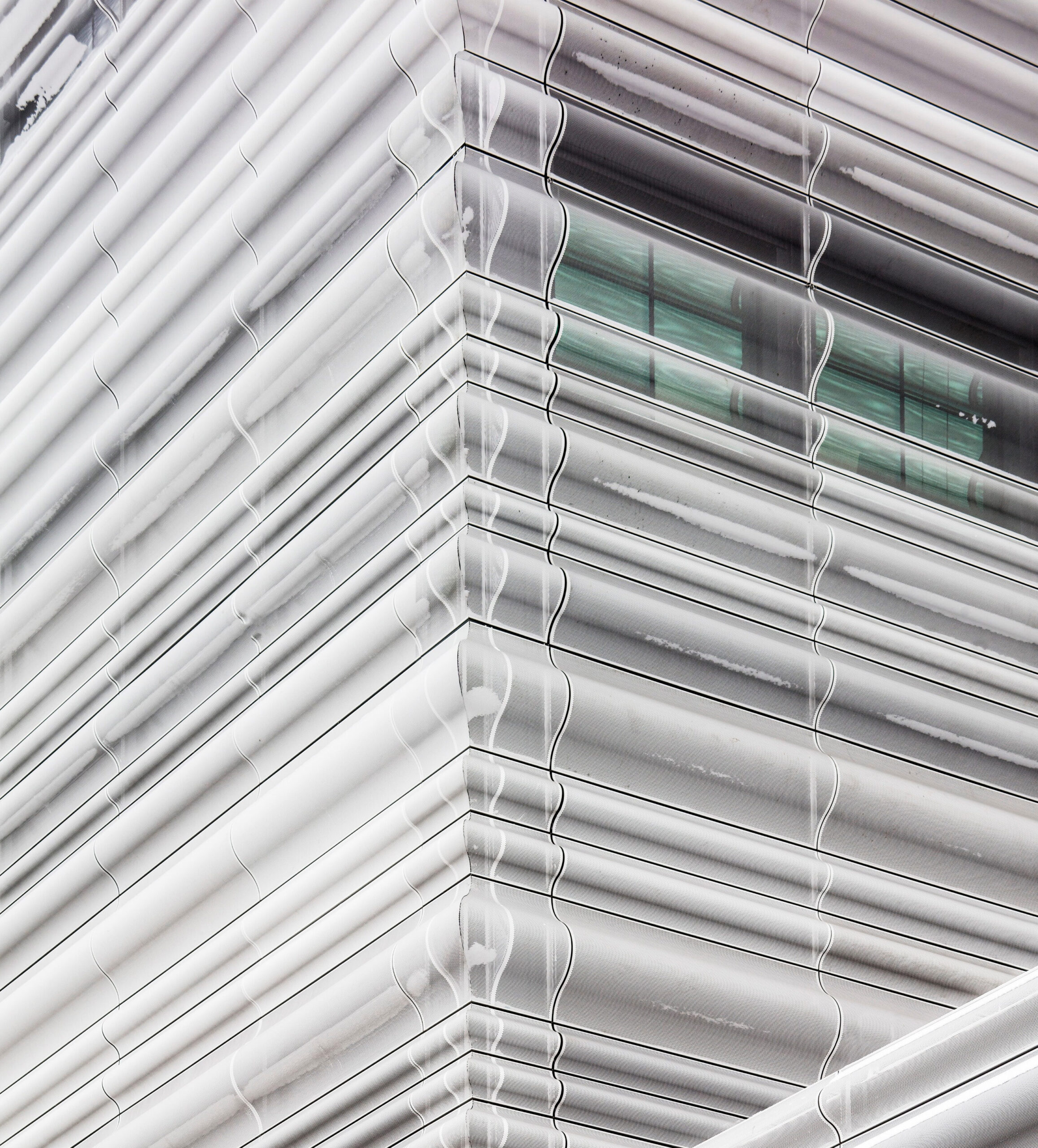 La foratura dei pannelli varia in dimensioni essendo stata studiata in modo specifico per fornire il livello di ombreggiamento ottimale per le diverse zone. Ad esempio, nelle aree di circolazione le forature sono più ampie per offrire ai visitatori la migliore visuale della città, mentre in corrispondenza dell’ingresso agli ambienti espositivi sono più fitte per evitare la penetrazione della luce e garantire quindi il mantenimento di una più bassa temperatura ambiente.