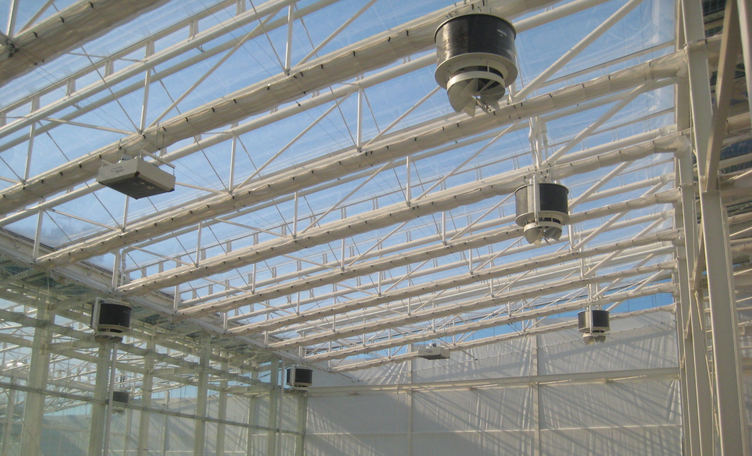 Oltre al rinnovo dell’aria, l’impianto di ventilazione delle serre ha lo scopo di regolare temperatura e l’umidità dell’aria e il livello della CO2 prodotta dal metabolismo dei vegetali.