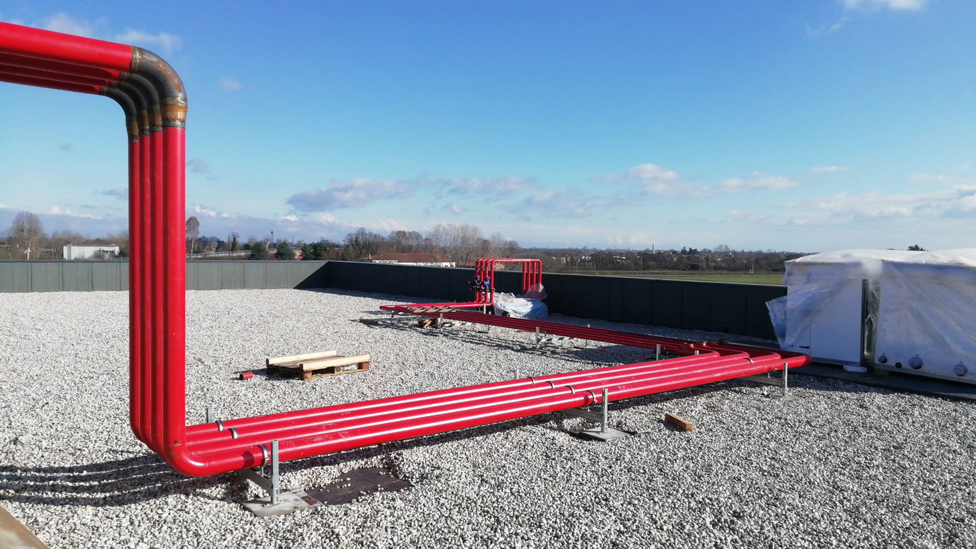 Tutte le reti idroniche sono realizzate con tubazioni in polipropilene rinforzato con fibra di vetro (PP-R), giuntate a fusione e con isolamento termico. Fanno eccezione le tubazioni: