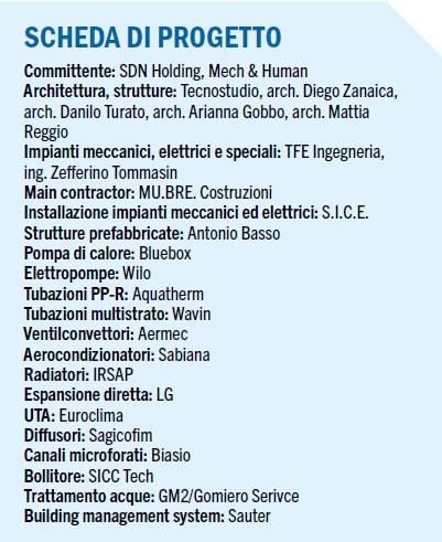 Promosso da SDN Holding, il nuovo headquarters Mech & Human è stato progettato da Tecnostudio (architettura, strutture) e TFE Ingegneria (impianti).