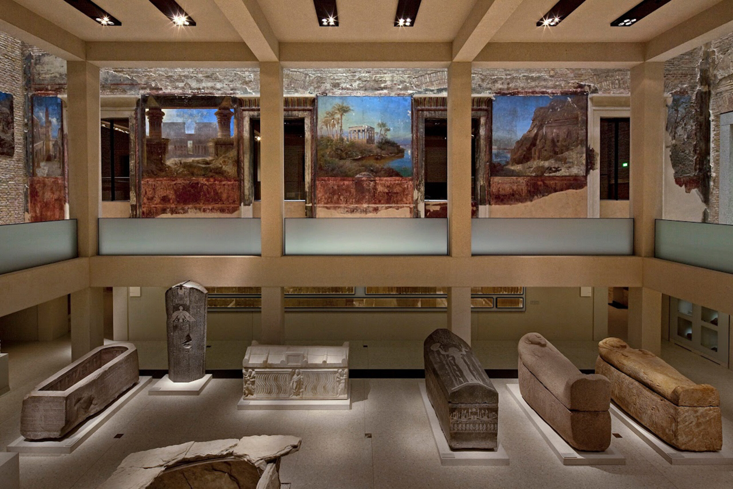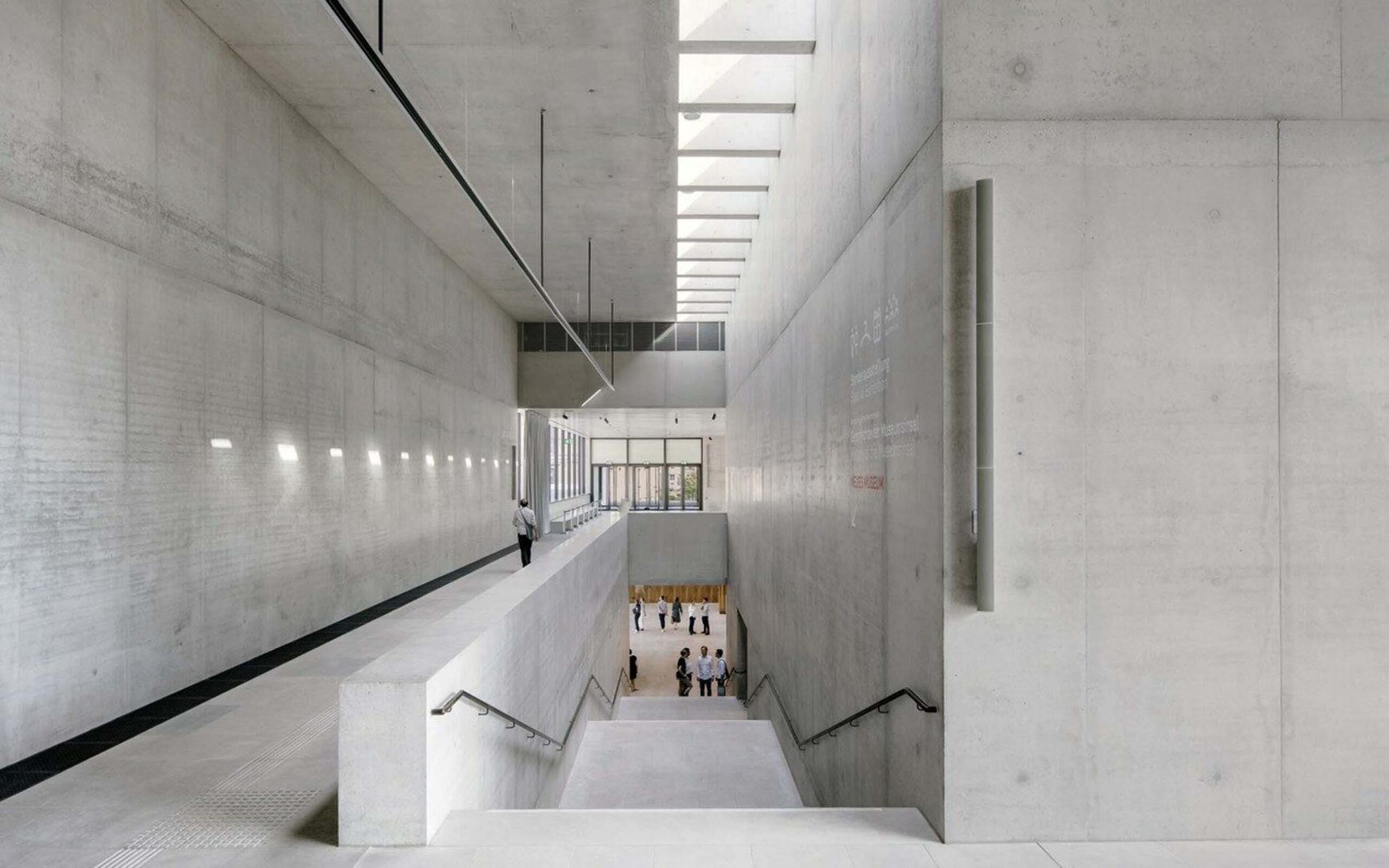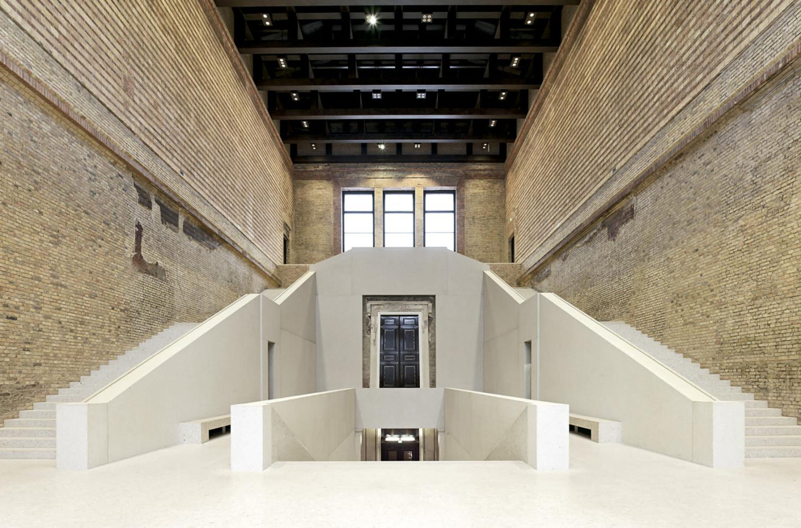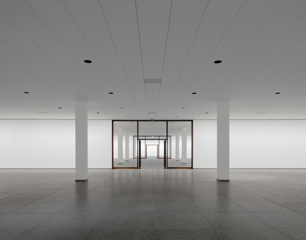 La sequenza originale delle sale è stata restaurata con nuove sezioni che creano continuità con la struttura esistente. Il restauro ha seguito le linee guida della Carta di Venezia, rispettando l’edificio storico nei suoi diversi stati di conservazione. Tutti i vuoti sono stati colmati senza interferire con le parti esistenti in termini di luminosità e di superficie. L’intervento di restauro è stato guidato dall’idea che la struttura esistente dovesse essere enfatizzata nel suo contesto spaziale e nella sua materialità originale. Quindi il nuovo riflette il passato senza imitarlo e sono state lasciate ben visibili le tracce della distruzione subita dall’edificio per effetto della guerra e del tempo.