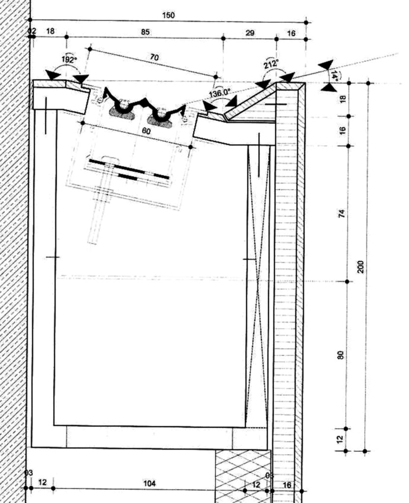 Per il controllo climatico del foyer di ingresso è stato previsto un sistema di distribuzione dell’aria suddiviso in due diverse zone. Nell’elegante parete in legno è stato integrato un sistema di diffusori lineari ad alta induzione, installati sopra la scala che porta al bookshop (figura 13). Ciò garantisce una distribuzione uniforme dell’aria priva di correnti e quindi un comfort ottimale per i visitatori e il personale del museo.