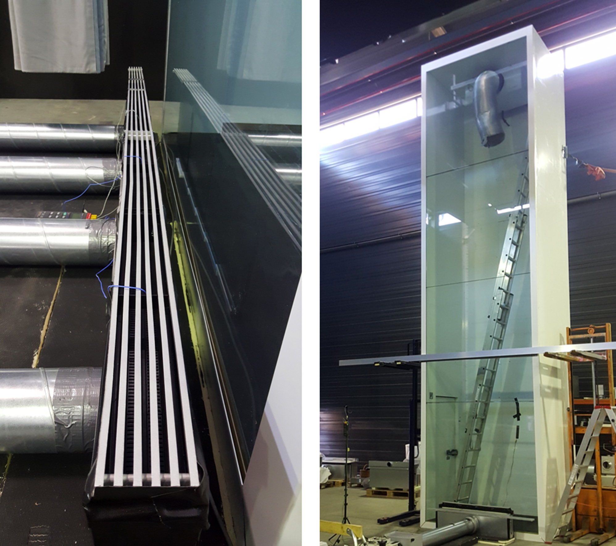 Data la particolare natura dello spazio, prima dell’inizio dei lavori di ristrutturazione sono state sviluppate simulazioni CFD dei flussi d’aria e prove di fumo realizzate in loco al fine di valutare la reale efficacia del sistema. È stato inoltre effettuato un test di laboratorio ricreando un elemento della facciata in scala 1:1 e simulando le diverse temperature esterne utilizzando anche una cella di raffreddamento (figura 19).