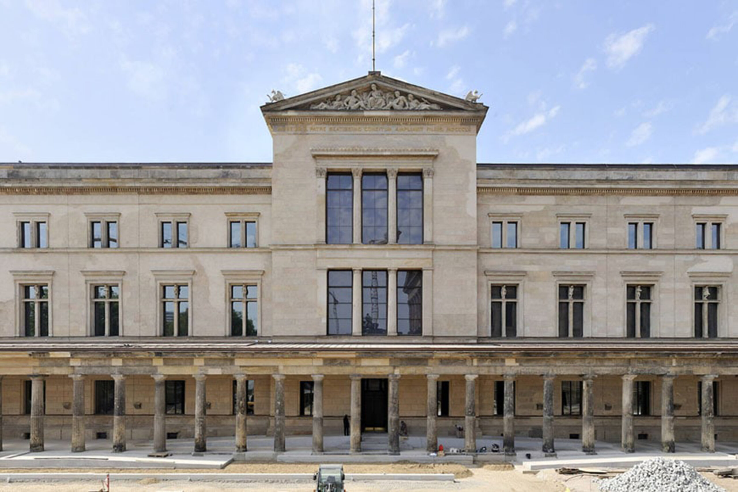 Nel 1997 lo studio David Chipperfield Architects vinse il concorso internazionale per la sua ricostruzione in collaborazione con l’esperto di conservazione Julian Harrap. L’obiettivo principale del progetto era il completamento del volume originale dell’edificio e comprendeva il restauro e la ricostruzione delle parti rimaste dopo la distruzione della guerra per riportarle alla gloria originale. I lavori sono iniziati nel 2003 e sono stati completati nel 2009.