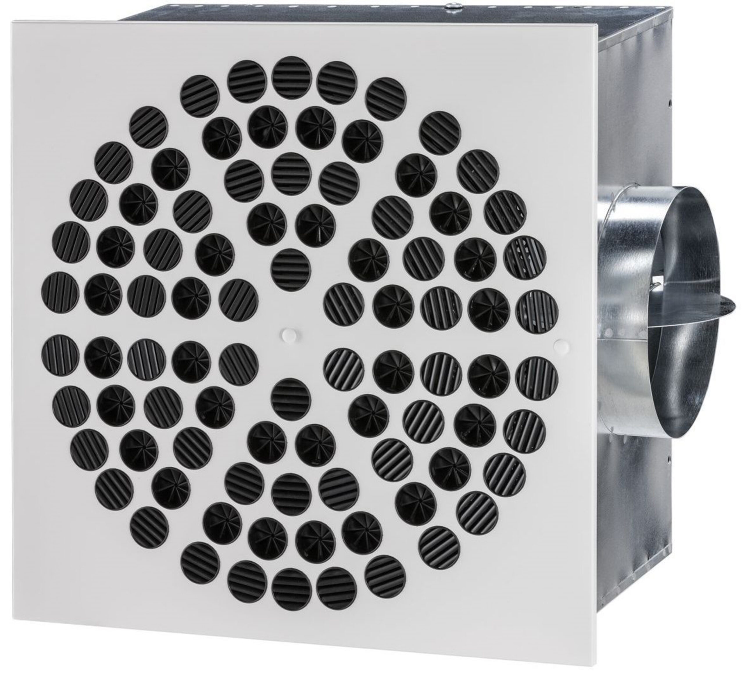 I diffusori circolari o quadrati hanno invece dimensioni da 210 a 800 mm. Grazie al particolare profilo del lancio autoportante possono essere installati anche in assenza del controsoffitto e sono disponibili anche nella versione con ripresa dell’aria integrata nella parte centrale.