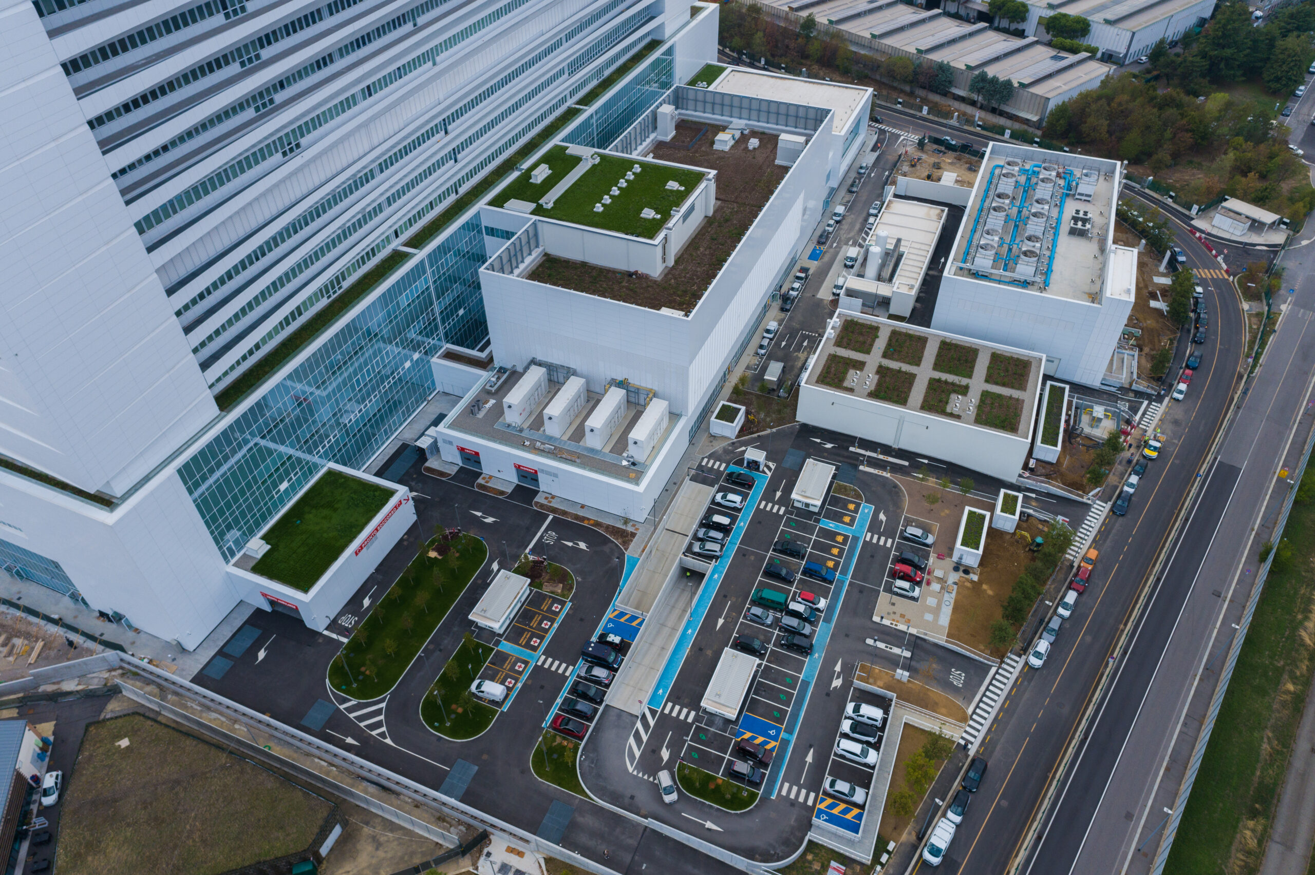 Nell’edificio principale sono inoltre presenti piani tecnici ai livelli -1 (servizi logistici, manutenzione), 7 (soprastante il blocco operatorio) e 15 (ultimo piano coperto), più i locali tecnici di piano, prevalentemente situati in prossimità dei cavedi impiantistici. La copertura piana è prevalentemente occupata da un impianto fotovoltaico (481,6 kWp).