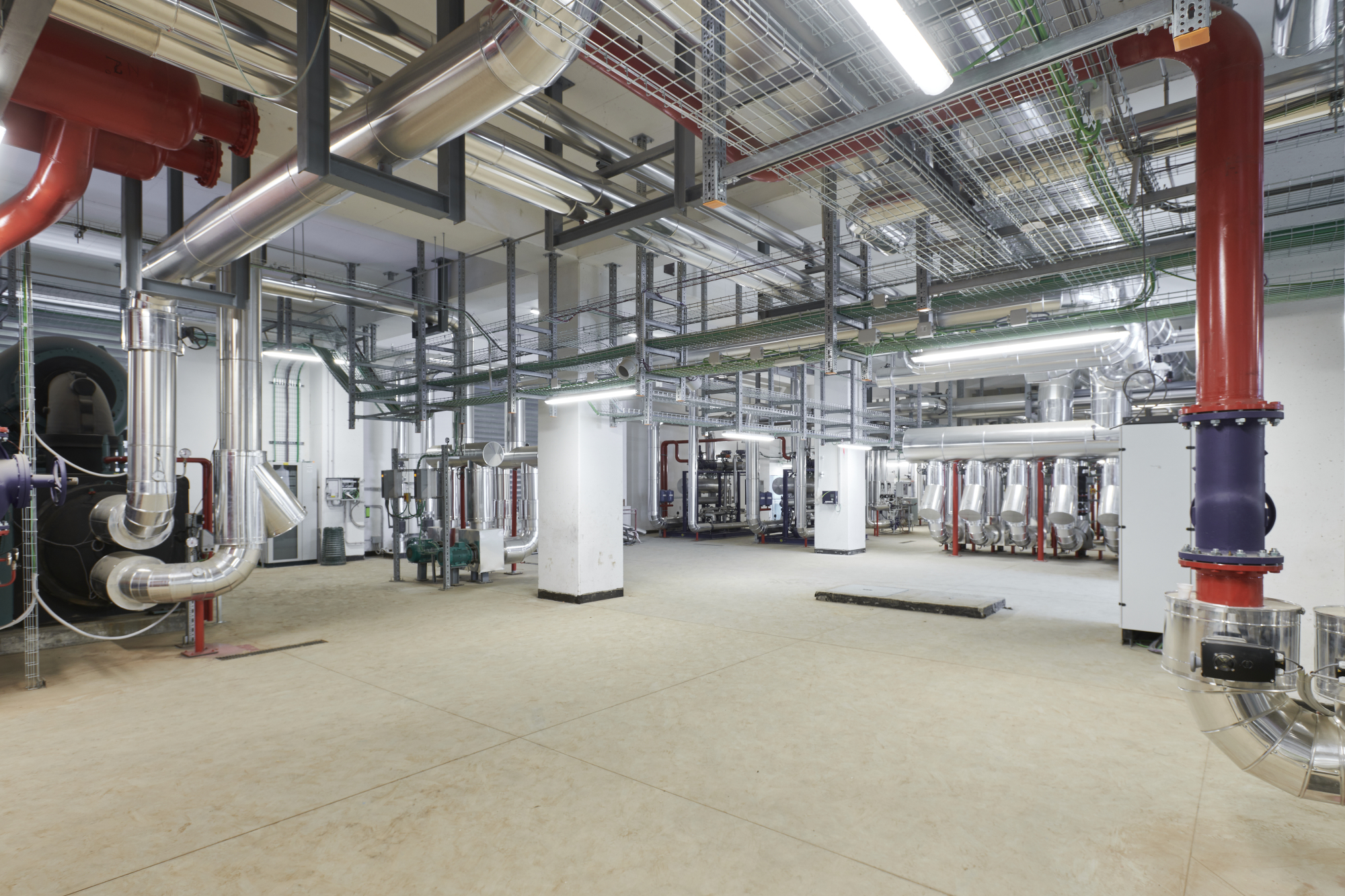 - 3 gruppi frigoriferi (ciascuno 3.000 kWf; EER 6,31; ESEER 11,39), con predisposizione per installare un quarto chiller;